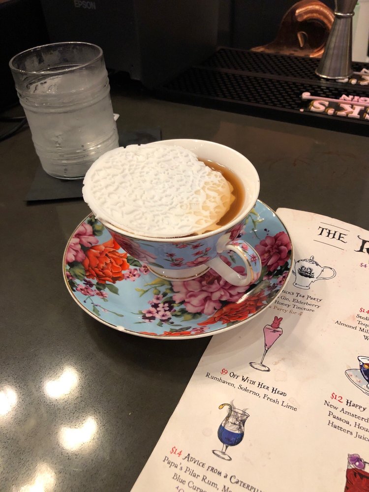 I finally landed on a drink and watched the bartender prepare it and serve it to me in a tea cup. It was very unique and completely delicious. After nursing it for several minutes and forcing uncomfortable small talk with the bartender and those around me I settled up and got ready to leave.