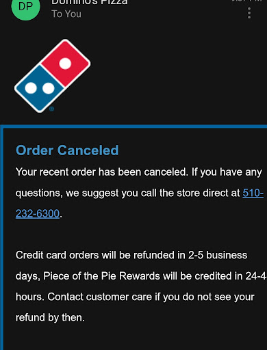Read moreI called them. I was put on hold. 25 minutes passed. Still on hold. There, I used my girlfriend’s phone to call, but instead of being out on hold, i kept spam calling. About 5 spam calle later, the receiver said, “one second transferring you directly to the manager.” I then ordered to a girl, who was polite and helpful. She told me the total price was 21$. Keep in mind I am still on hold elsewhere. 1 hour later the driver arrived. I had 25$, 4 dollar for tip. This worker was fast, somewhat out of breath, and had a sense of urgency that i am almost certain no one else at this dominoes had. He deserved a tip, but the lady told me the wrong cost, and it was actually $26. I told the driver to wait, i’d bring more to cover it plus tip, but instead he pulled out his wallet, put in one of HIS dollars, and drove off. This is the worst dominos i’ve ever been to. the pizza was cold! And also, about halfway through the meal someone answered the phone (that i was on hold for) and asked, “uhh is...
