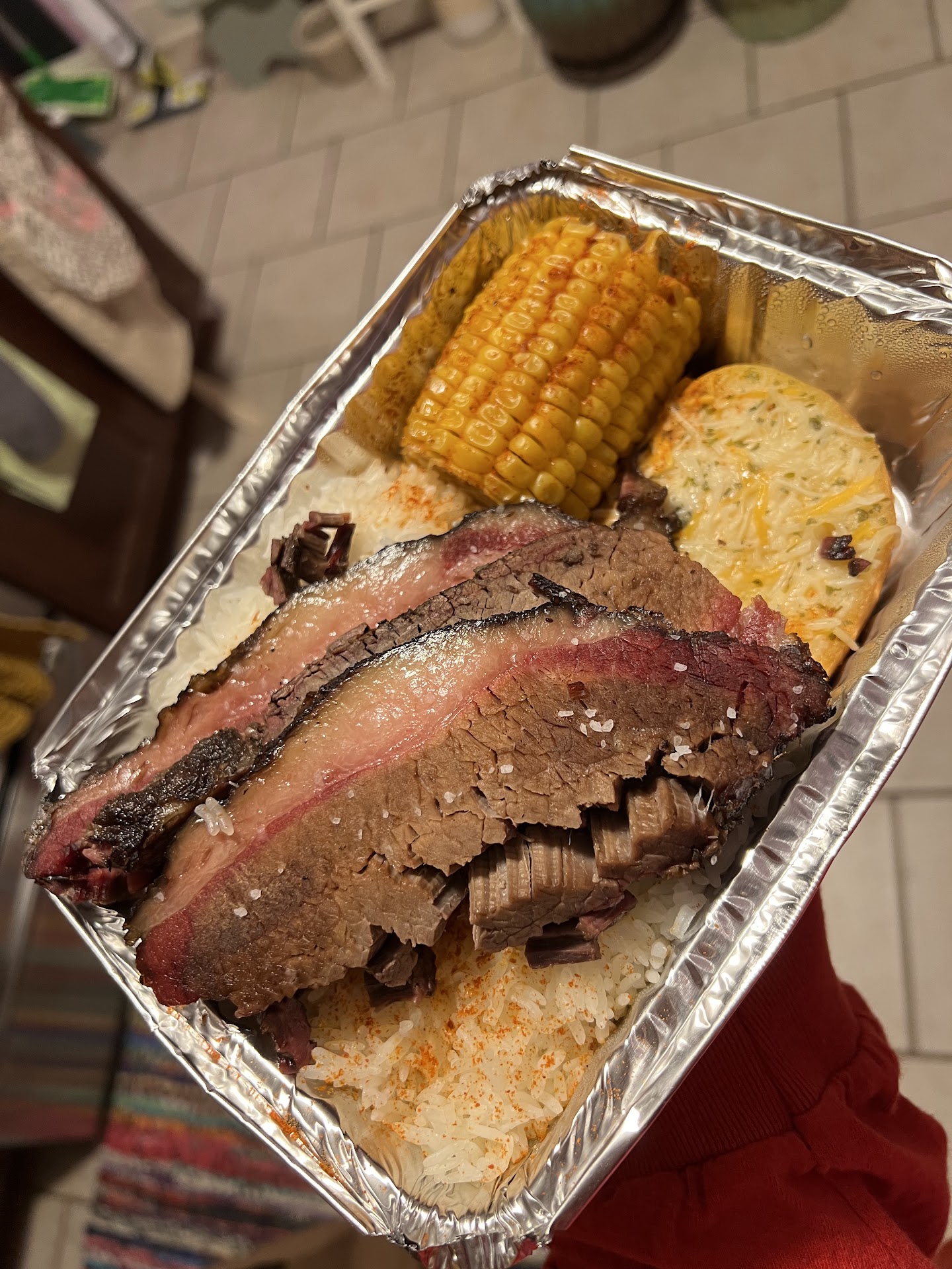 Read moreOrdered the brisket and sausage combo plate that came with rice, bread, and corn through Uber Eats. I have had my fair share of BBQ and it sucks to say that I did not enjoy the brisket at all. Fat is not fully trimmed which leaves big strips of chewy, unrendered fat on the outside edges of the brisket which makes the texture really weird and the taste too overwhelmingly beefy and fatty. The meat part of the brisket on the other hand was dry for brisket standards, but edible. Two links of sausages that come with are just okay, a bit too salty for my liking but it was good with the bbq sauce. Side portions were huge which I appreciated and the rice was necessary to soak up all the beef fat from the brisket. Overall, it wasn’t a horrible experience but I would not...