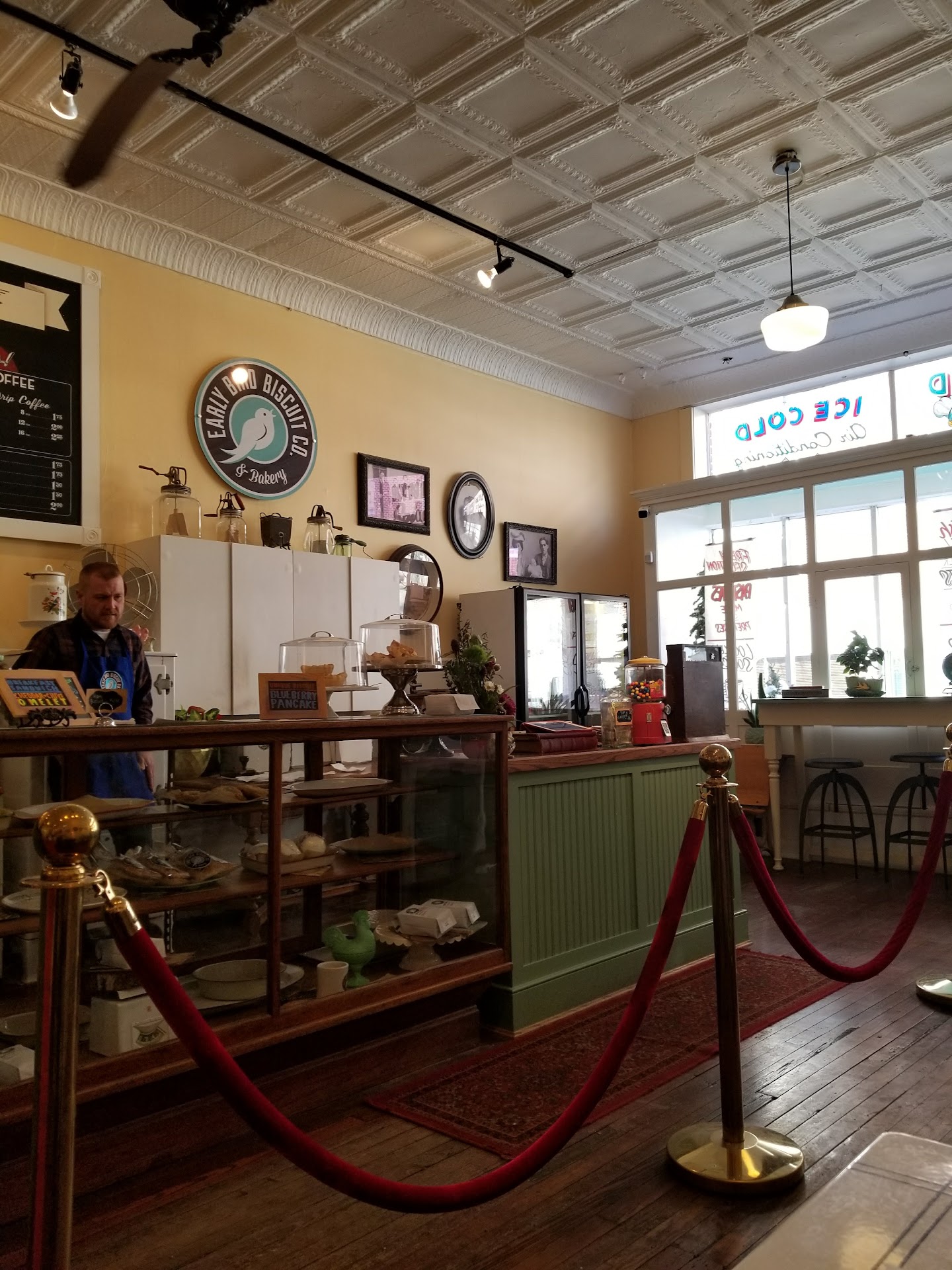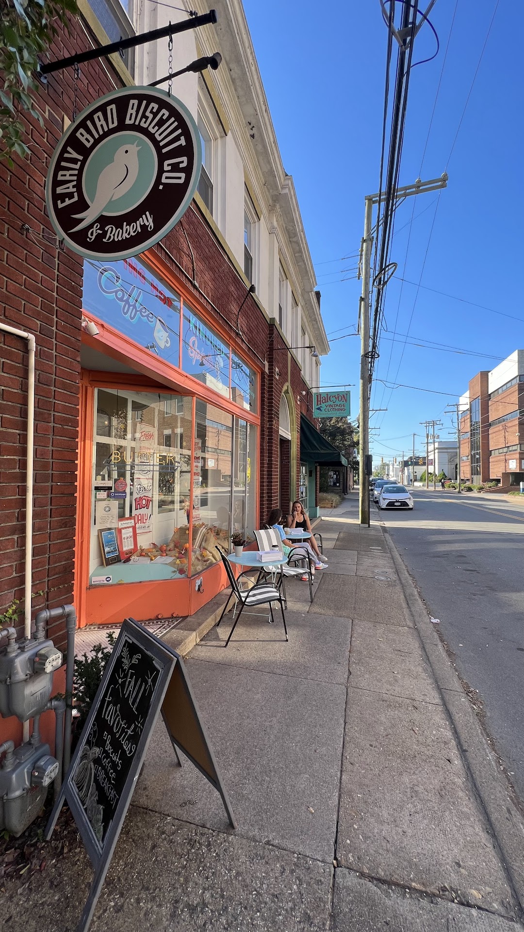Read moreI had THE best experience with Early Bird Biscuit Co. this morning. I was having a bit of a rough morning, and was late to work - but decided I needed food to power through my day. I had never actually gone inside to Early Bird (but knew they were delicious because my office orders massive amounts of biscuits from there all the time). The atmosphere is cozy and cool, and the staff was all joking around and smiling first thing in the morning - while still getting work done and paying attention which was great. I order a ham breakfast sandwich suggested by one of guys behind the counter and an iced vanilla coffee. I start looking for my wallet to pay and realize I had either left it in my car or at my office. I start panicking and tell the cashier that I need to run and grab it.. he then looks at me with a smile and says "Nope! Don't worry about it, breakfast is on us! Just promise you'll come see us again soon." I just about started crying! No one has ever paid it forward, or has been that randomly kind to me before! SO NOW, not only will I rave about how delicious Early Bird is, I can also say my first experience inside the actual shop was so incredible, and means more to me than I'm sure they'll ever realize. Thank you for making this random, busy woman's day so...