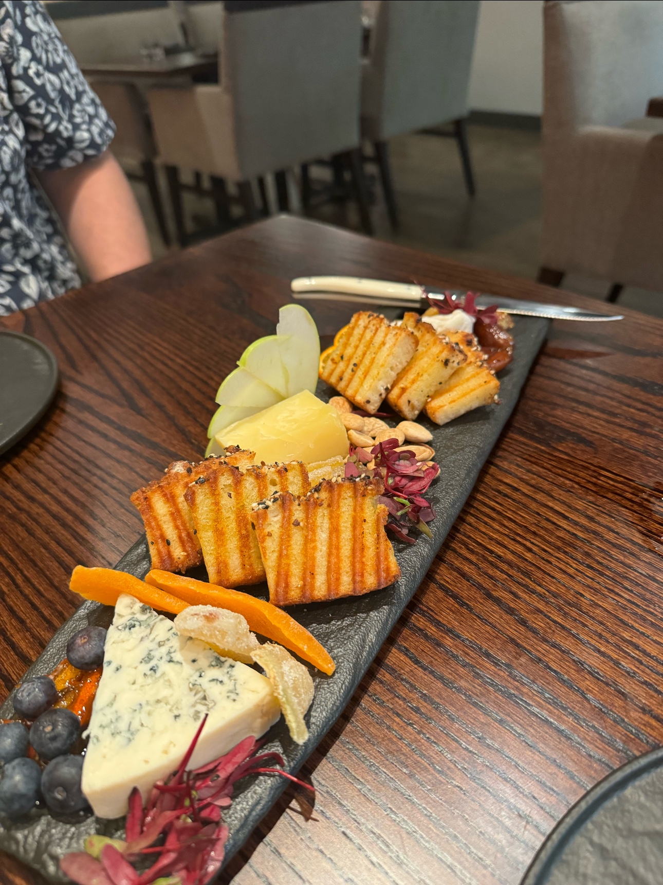 Read moreWe had 3 different glasses of wine, a chardonnay, cab franc, and merlot, all were good. The restaurant was quiet, only 4 other patrons during our visit. The young woman that waited on us did a good job but did not know the wines yet. The sommelier was helpful, he opened the cab franc for us which they normally do not sell by the glass. His voice was very loud. We had a charcuterie board with only cheese as one of us is vegetarian. Everything on it was flavorful. We had the seared scallops which were a little under cooked on the bottom and were expensive for 4 of them. We had the mushroom appetizer which was rich and unusual. We also shared the corn cake dessert which was innovative though it was missing the corn ice cream that was advertised. Our bill with an additional basil Hayden was $179 plus tip. It would be more enjoyable if there were more patrons present. We ended up taking a box home so could have done 2...