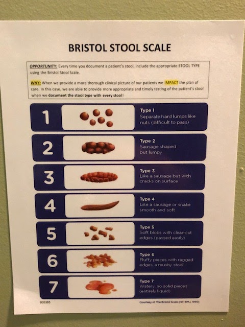 I am also attaching to this post a chart for grading BMs. This came directly from the BM Institute, an authoritative source if ever there was one, and is used with permission. I think most people know what to do with this, but I must express one word of caution. Do not, under any circumstances, take this chart into a port-a-potty and attempt to grade BMs. I can tell you, having tried this, it will only drive you nuts and fill you with self doubt. Go ahead and have fun grading your own, but we should keep this grim business on a higher plane and not digress into voyeuristic behavior.