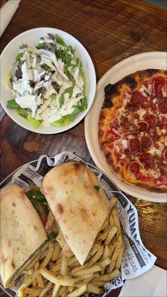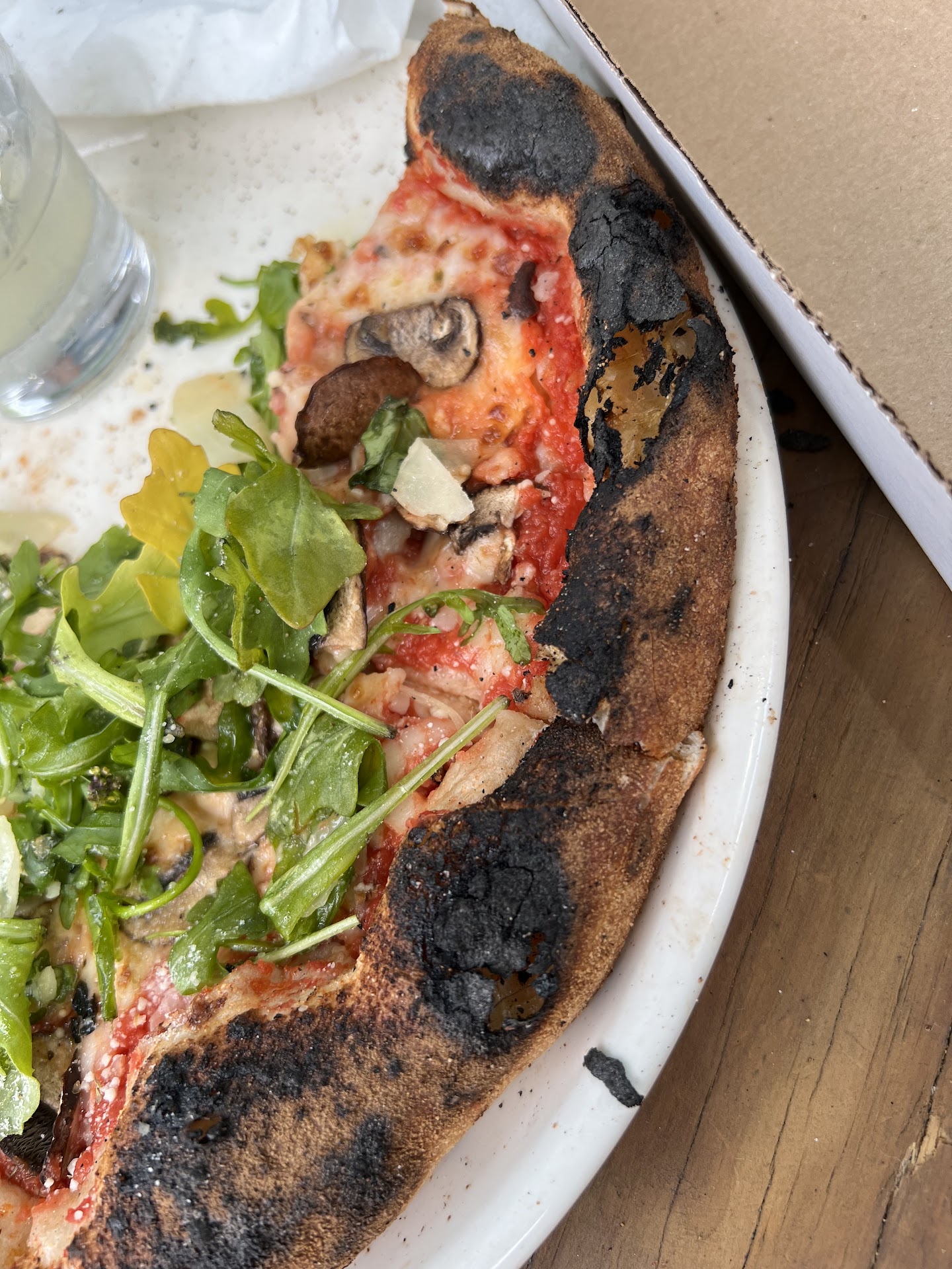 We split the meatball pizza and a Cobb salad. The salad was fine, mostly forgettable although avocado was a nice touch. The pizza had great flavor but it was on the smaller side (too big to be a personal pizza but too small to share without adding something else). The crust had a decent chew and some potential but it needed another 30 seconds or so in the oven to get a good char. The table next to us got a pizza that got a far better and longer bake, which doesn’t speak highly of the quality control for a self-described pizza company.