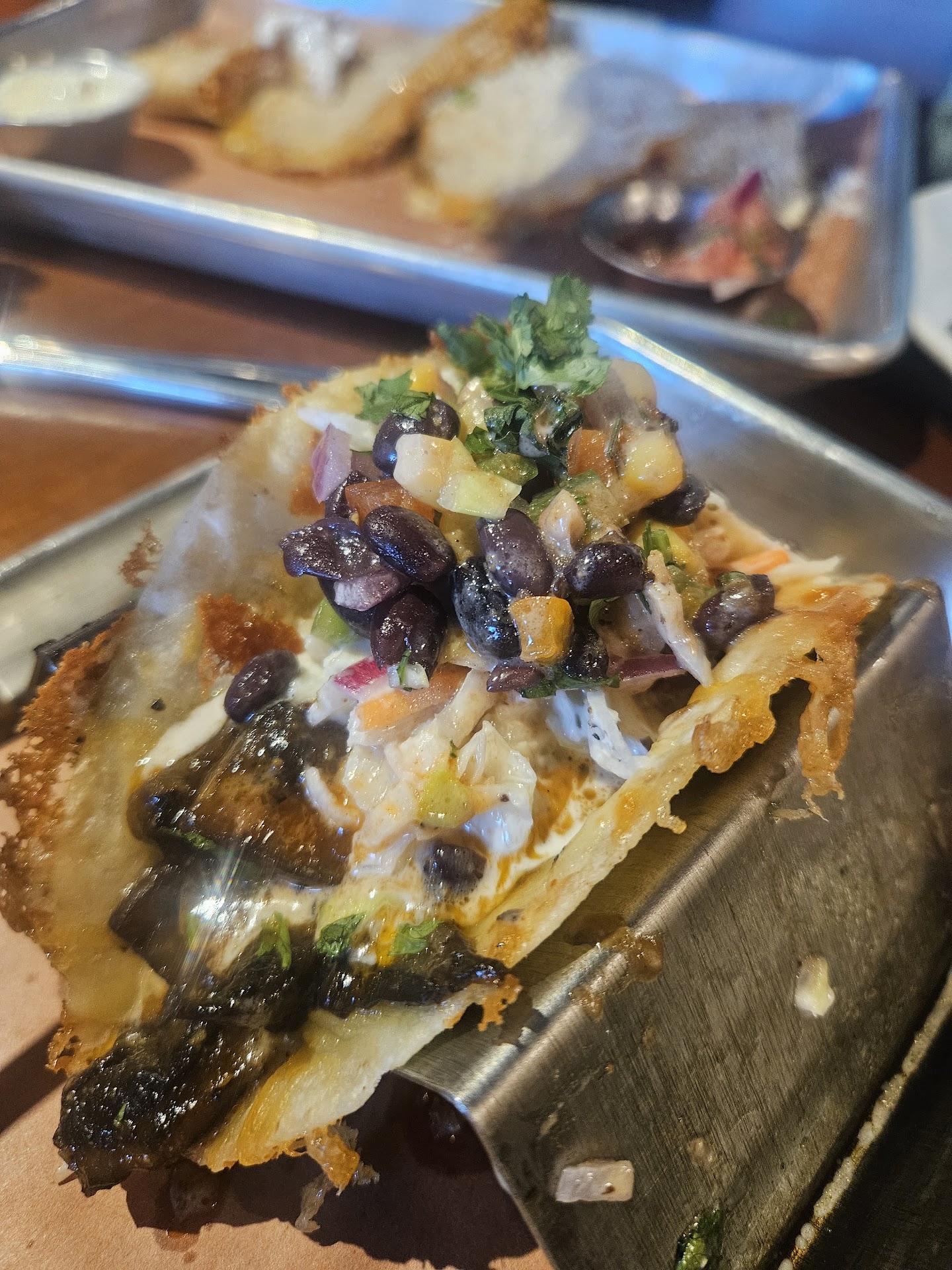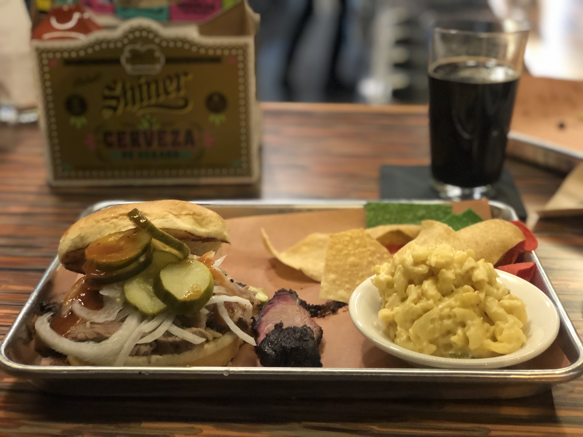 My nachos came topped with iceberg (NOT a fan) and I added a side of Texas caviar (pico with beans and corn😋). The BBQ was pretty fatty, indicating it isn't slow cooked, and it had some pretty big chunks which isn't usually the case when the meat is pulled off the pig.
