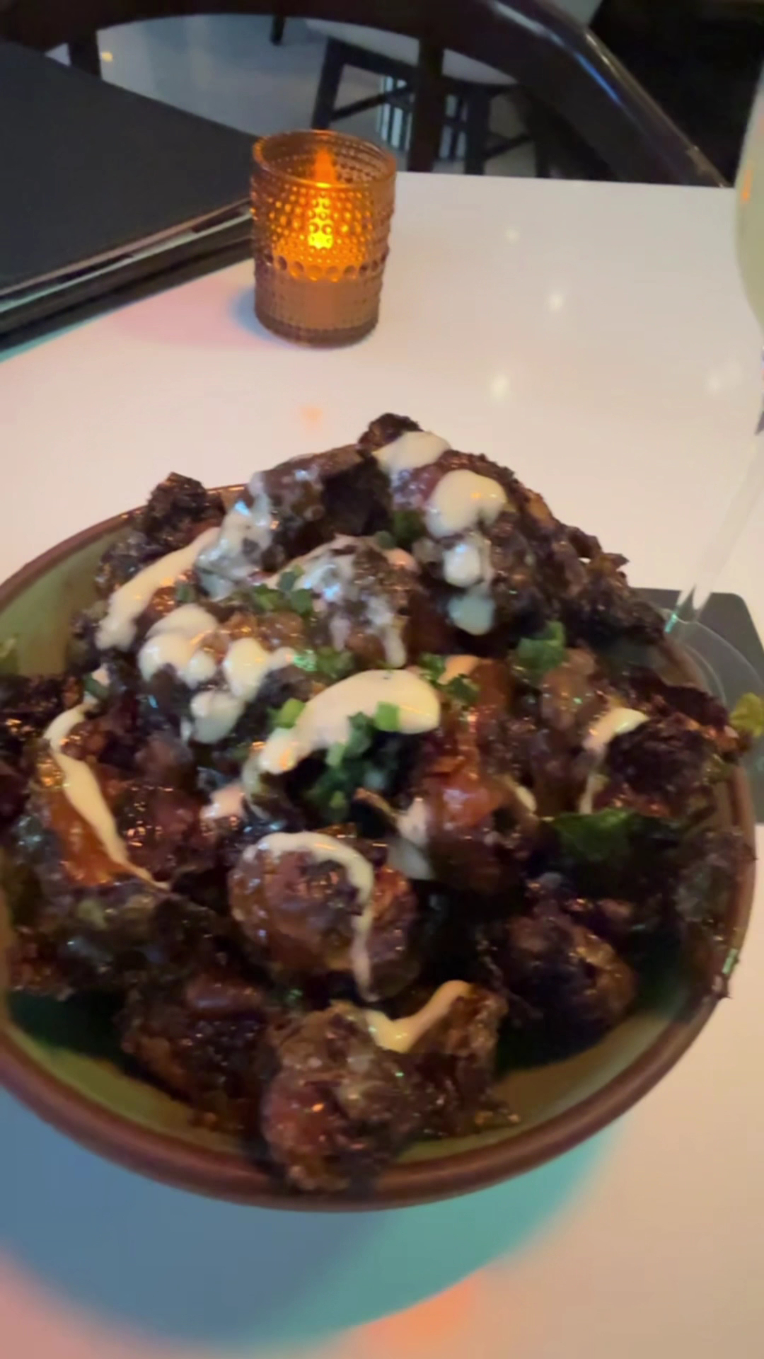 We came in to an empty lounge and the server laughed we had a reservation. We chose where we sat. The menu looked delicious. I ordered the Wagyu Poutine. OUT OF STOCK. I ordered the Box Office Brussels. OUT OF STOCK. I ordered the chocolate beignets. OUT OF STOCK. Okay, we'll just have drinks.