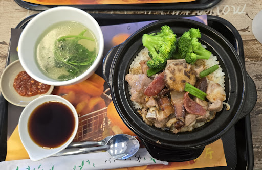 Claypot was pretty good, only $10.75. If you dine in, you get offered free tea/soymilk. Each entree comes with soup, soup is not that impressive but its free. No tip establishment which is surprising, it's like fast food style just put your tray back on the shelf after...