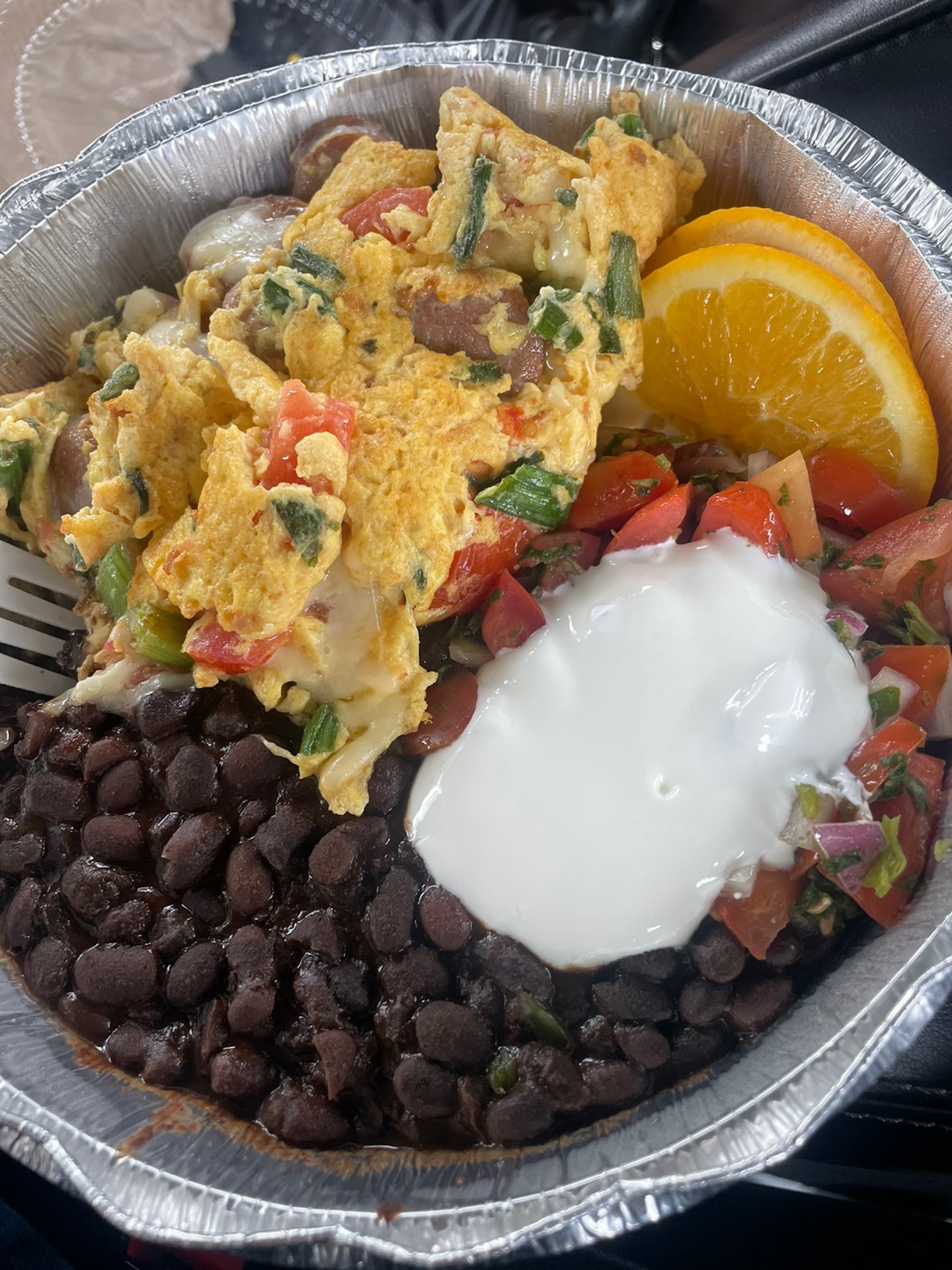 On to the potatoes: They serve home fries, and their choices of additions is, I think, good. There were bits of both onion and tomato in there, both contributing a distinct and pleasant tastes. The potatoes need a bit of improvement. The entire potato chunks were soft - no crispy outside that I associate with the best home fries. I'm glad they come with a dollop of sour cream without having to ask.