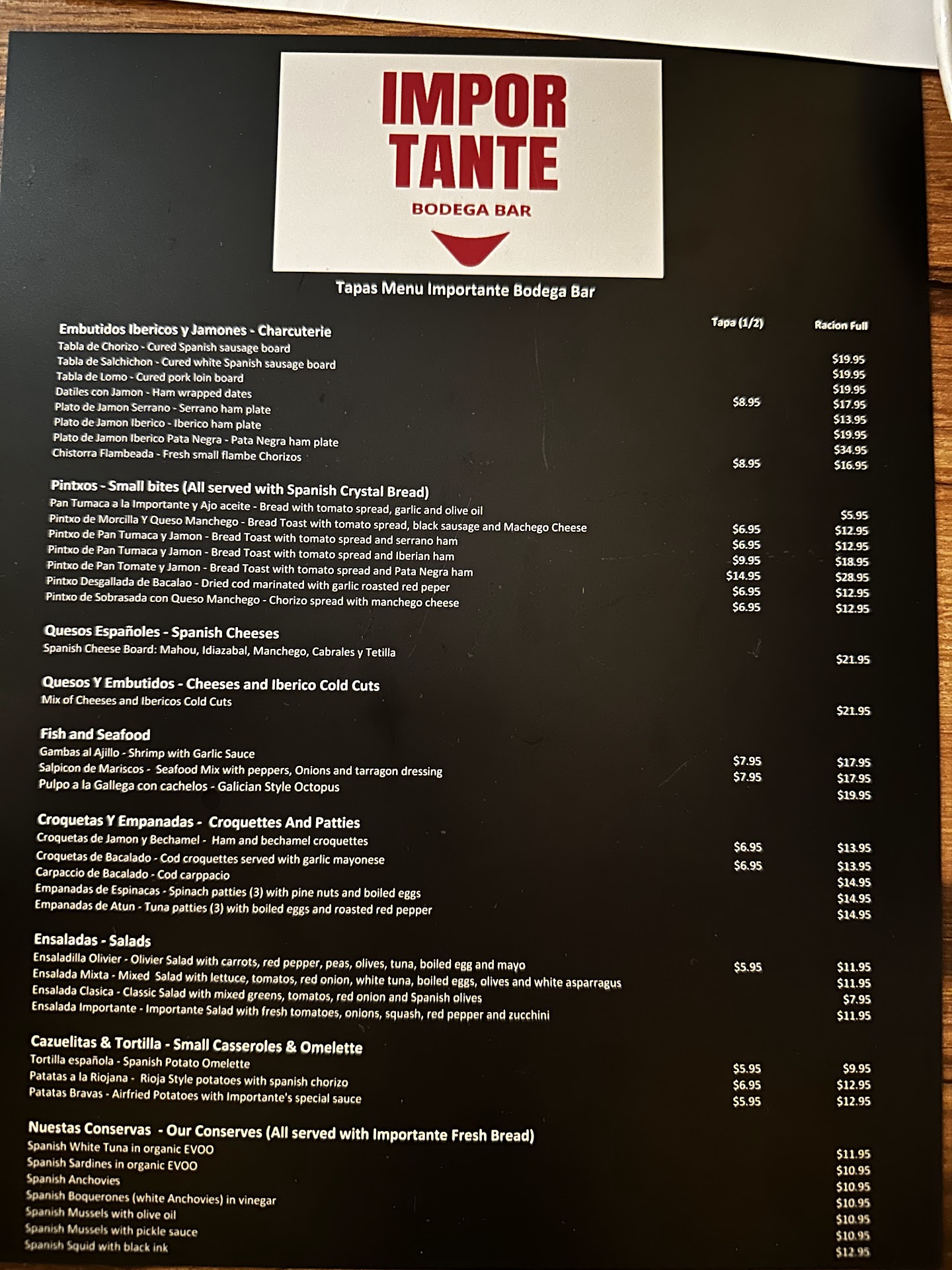 First of all, I am french. Being a neighbor of Spain, i know what true tapas are and it is exactly what we have in Importante. I went there with friends and we ordered a couple of different dishes and wines. Portions are not huge but they are meant to be shared. It’s why it’s fun. We had spanish tortilla (potatoes omelette), pintxos Pan tumaca (bread with tomato and olive oil), Serrano ham and a plate of spanish cheeses (Oh boy! Their blue cheese Cabrales has some character! Delicious but not recommended for sensitive palates!) One of my favorites are the patatas bravas (fried potatoes). Crispy outside, soft inside with the aioli sauce (garlic mayo) or their spicy home made sauce, it is simple but it makes the job! And here comes the hidden gem of the menu! The Jamon Iberico Pata Negra! Maybe some people didn’t take it because of the high price ($35) but the truth is that we have here a Product of Exception! This ham is coming from spanish black pigs raised with chestnut or acorn. Ham is cured for up to 48 months. The process gives a rich nutty flavor with lingering taste in your mouth! And the pata negra means it is the black label, so the highest grade of the Jamon Iberico (spanish ham). It is basically what caviar is to fish eggs or A5 Waggyu is to beef… It is « la crème de la crème ». Export from Spain is limited and they are hard to find. My very humble advice. Go with your family and friends! The dinner will go beyond food. With an adequate red spanish wine, you will get « Wow!! » or «Oh my God! » or « it stays in my mouth!! ». Then it becomes an experience, a memory you are sharing. For me, it will...