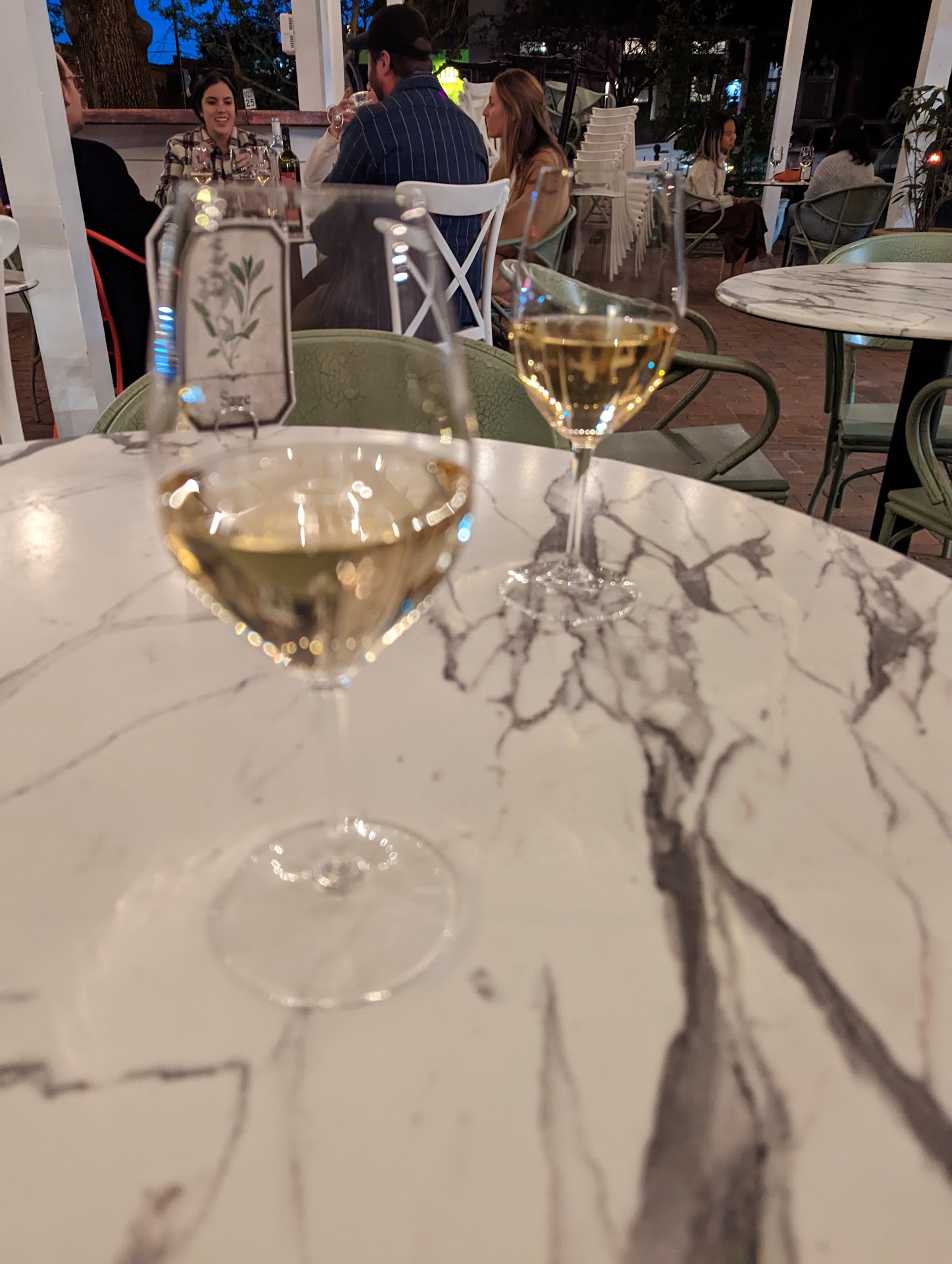 The atmosphere is top notch. There's plenty of seating on the covered patio. When I first visited in cooler weather, they had space heaters outside. Note that they don't really have any tables inside to sit down-- just the standing bar in the middle of the shop, where you place your order. If you're visiting for the first time, know that you essentially enter the doors into a basement/lower level, underneath the stairs to another building. Then, you order and pop back out and up to the patio.