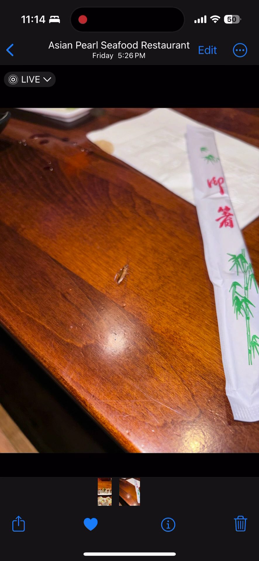 THEY HAVE ROACHES. Our order that day: Tiger Roll, Miso Soup, & Sake Avocado Roll