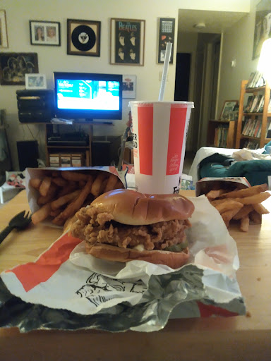The chicken sandwiches are as good as the chicken dinners. One side of fries was free from the app by spending $6. Wish one could go in because they have a great buffet. UPDATE:. I can not believe it has been a year since my last review. I know I have been in since. This time, I ordered the 3 piece Chicken Tenders Combo with Mashed Potatoes and Gravy, a Biscuit, and a Diet Pepsi. It tasted good, but I would have liked a meal with a breast and leg. What I would like to know is can people dine in. I know they don't have the buffet open, because I looked in and saw nothing on it. The buffet was delicious. I hope it doesn't close. UPDATE: July 4, 2023- It has been about since December when I did my last review here. I received an email about their new Ultimate BBQ Chicken Sandwich, and I had to try it. I wanted a combo, which would have been cheaper, but the only drink available for a combo was Blackberry Lemonade, which didn't sound too good. I had to order each item individually. I also ordered the Ultimate Recipe Fries and a Diet Pepsi. The BBQ sandwich was great. Besides the chicken and BBQ sauce, it also had on it bacon, cheese, and a pickle. It is a limited time only item, but I think it should be on the menu full time. UPDATE: September 28, 2023-I went there the other day and ordered the Spicy Chicken Sandwich, Secret Recipe Fries, and Diet Pepsi. It was delicious! I just wish it had cheese on it. When I went to the drive thru window to pick up my order, I looked inside. There was no one eating inside, and the buffet was blocked off, so they may not have a buffet anymore. They got a new sign outside,but that isn't enough. They need business inside. UPDATE: January 11, 2024-It had been a while since I had KFC, so I decided to order a meal. I noticed in the app there was an offer for a free chicken wrap. All you had to spend was a minimum of $1! I decided to order a Classic KFC Wrap, Secret Ingredient Fries, and a Diet Pepsi. The wrap was delicious, but I wish it was bigger. It was small. Next time, I might order two and make it a meal. UPDATE: February 3, 2024-KFC has updated their app, so you can now get points when you order, so I decided to give it a try. I ordered the Smash'd Potato Bowl with Nuggets and a Diet Pepsi. The app worked, and I got my points. A Smash'd Potato Bowl is mashed potatoes with cheese sauce on it and their Secret Ingredient Fries in it. I ordered mine with their Chicken Nuggets, just so I could have some chicken in it. It was delicious, and I am willing to order it again. UPDATE: March 20, 2024-KFC keeps trying new things to get people in, and now they have come up with something different: the Chizza, which is four pieces of chicken topped with sauce, cheese and pepperoni, just like a pizza. The only thing different is that this location ran out of pepperoni, and they couldn't get any more, but still just as good. Eating this was like eating a handheld Chicken Parmesan. The combo came with Secret Ingredient Fries and Diet Pepsi. It was delicious, and I am willing to order it again. UPDATE: July 13 and 15, 2024-KFC is still trying new items, and now they got another new item: the Saucy Chicken Sandwich, which comes in three flavors: Honey BBQ, Korean BBQ, and Honey Sriracha. The Korean BBQ sounded good, so I ordered it on the app, along with Secret Ingredient Fries, and Pepsi Zero. When I got home and opened up my order, I discovered I got the Korean BBQ Saucy Chicken Nuggets, instead of the Korean BBQ Saucy Chicken Sandwich. I was pressed for time and didn't have time to go back and get the correct item, so I ate it. I later called the restaurant and spoke to the manager. He said that was 100% his fault, and it was a new item, and he wasn't used to making it. He said he would give me a free meal. I went back two days later and got my free meal of the Korean BBQ Saucy Chicken Sandwich, Secret Ingredient Fries, and Pepsi Zero. It was correct, and it was delicious! It was...