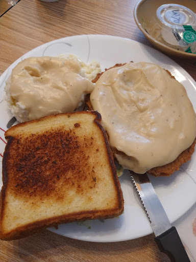 Maybe they treat locals better. I had read good things about this place, but our experience was not great. Lori, the server, was very snippy when we asked about anything on the menu. She acted as if the place was busy and we were taking up her time. It was far from busy! I got the chicken fried steak and was disappointed. The oil/grease they used must have been old, because everything on my plate tasted a little bit off. The menu said the meal came with a biscuit, corn, and mashed potatoes. I was treated to a piece of bread that was toasted (but just on one side), INSTANT mashed potatoes🤢(for $18.50, I should receive real potatoes!), no corn, and a dried piece of chicken fried steak. My husband's taco salad had brown pieces of lettuce, and the taco meat was not seasoned but appeared to be a broken up old hamburger. Our drinks were never refilled. On the bright side, if you like pickled beets, this is the place for you. They seem to put a slice or two on every plate, regardless of what you order. Overall, a really...