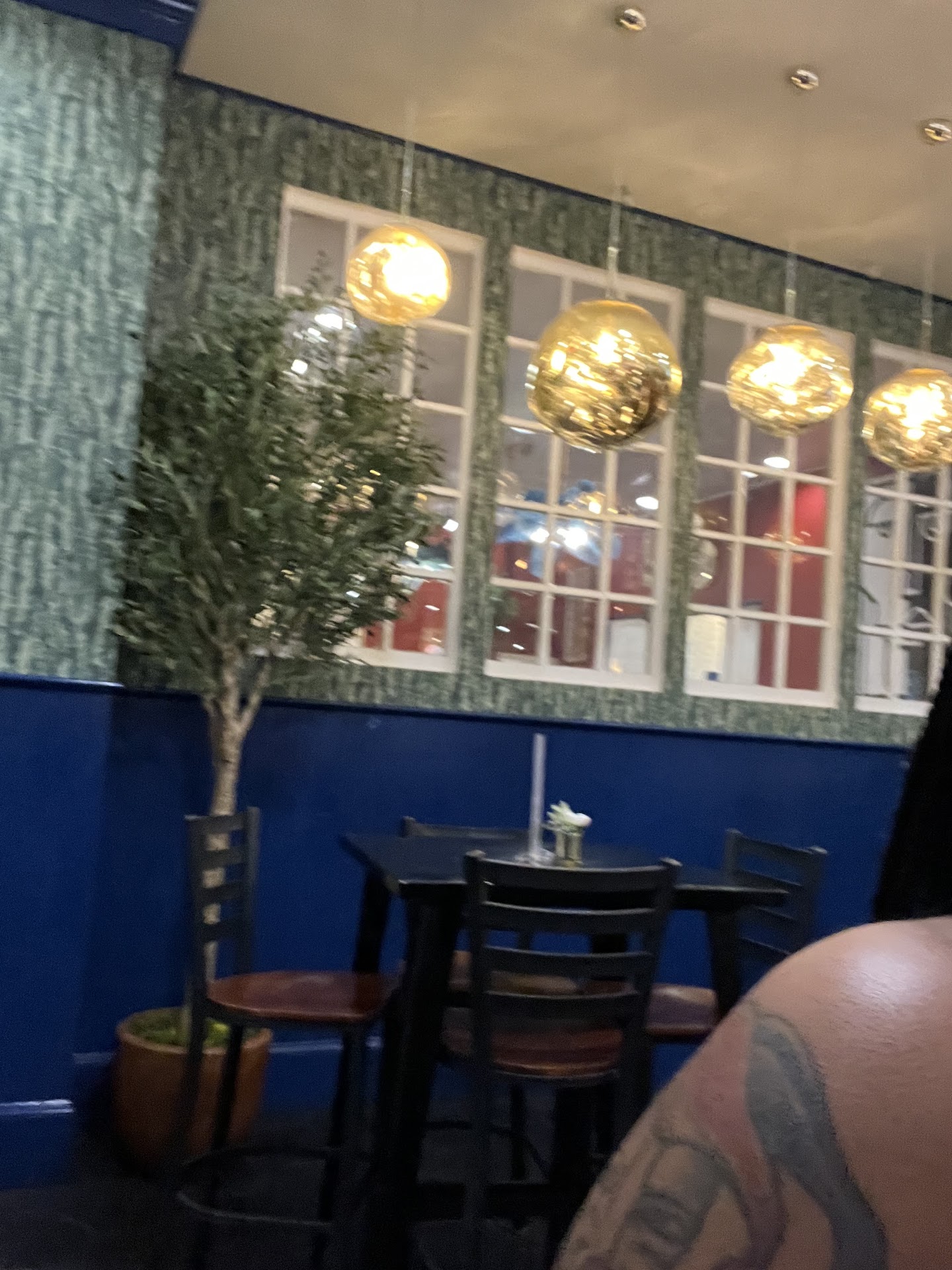 We were greeted by the most pleasant host. Not only keeping the restaurant organized, but gave suggestions, was keeping everything clean and pre bussing tables. Sims is absolutely amazing. They got us seated as soon as we arrived. The menu was great but we werenāt even prepared for the art work and jewel colored seats. The comfortable seating, immaculate restroom. Did I mention the stemware choices???