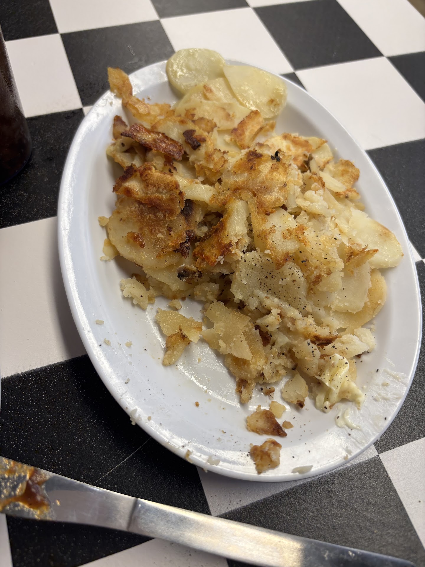 Read moreI ordered a Sheila Scramble with bacon, mushrooms and cheese. It comes with choices. Mine was two biscuits and home fries and I added sausage gravy on the side. The scramble was perfect with a generous supply of mushrooms and bacon worked in. The cheese rather cooked itself into the 3 eggs but I tasted them. The home fries (slices) were fried to a golden brown and the biscuits were firm on the outside with a soft flaky center.