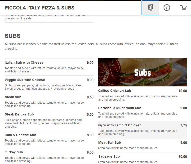 Read morePiccola’s is a classic college takeout and dine-in eatery that has been serving Richmond for 25 years. It offers a variety of pizzas, subs, salads, and appetizers, as well as a selection of Italian wines.