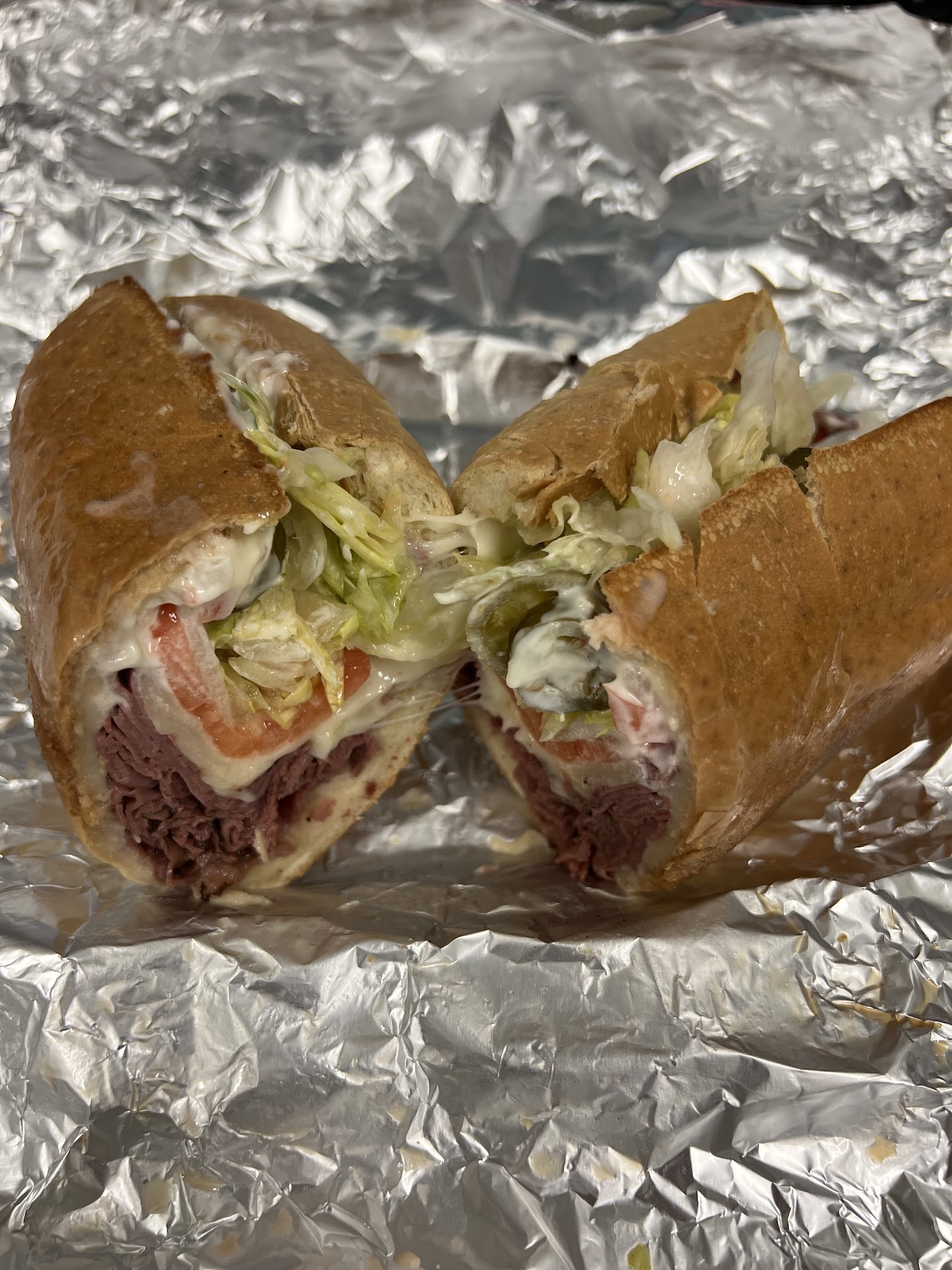 I decided to try their pastrami sub baked with added hot sauce and jalapeños, which sounded like a spicy and satisfying choice. The sub was generously filled with sliced pastrami, melted cheese, lettuce, tomato, onion, and mayonnaise. The bread was toasted and crispy on the outside, but soft and chewy on the inside. The hot sauce and jalapeños added a nice kick to the meaty and cheesy flavor, but not too much to overwhelm the taste buds. The sub was large enough to fill me up, but not too heavy to make me feel sluggish.