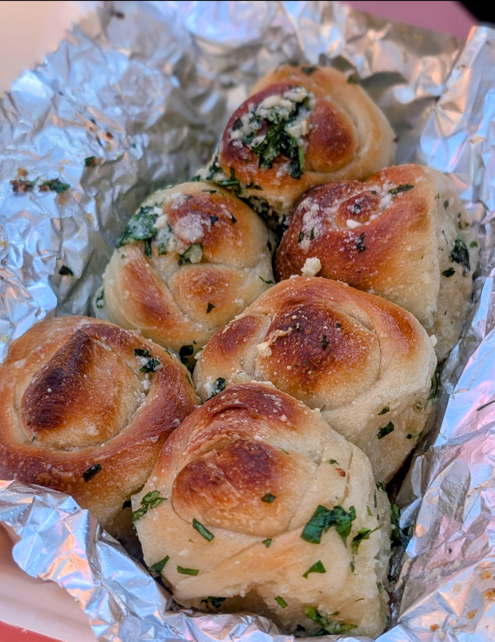 The food is good. Their dough is amazing. I love the half baked purchase, warmed and crisped upon ordering and service. McMushroom is the way to go. A 4 to 4.5/5 as far as pizza goes.