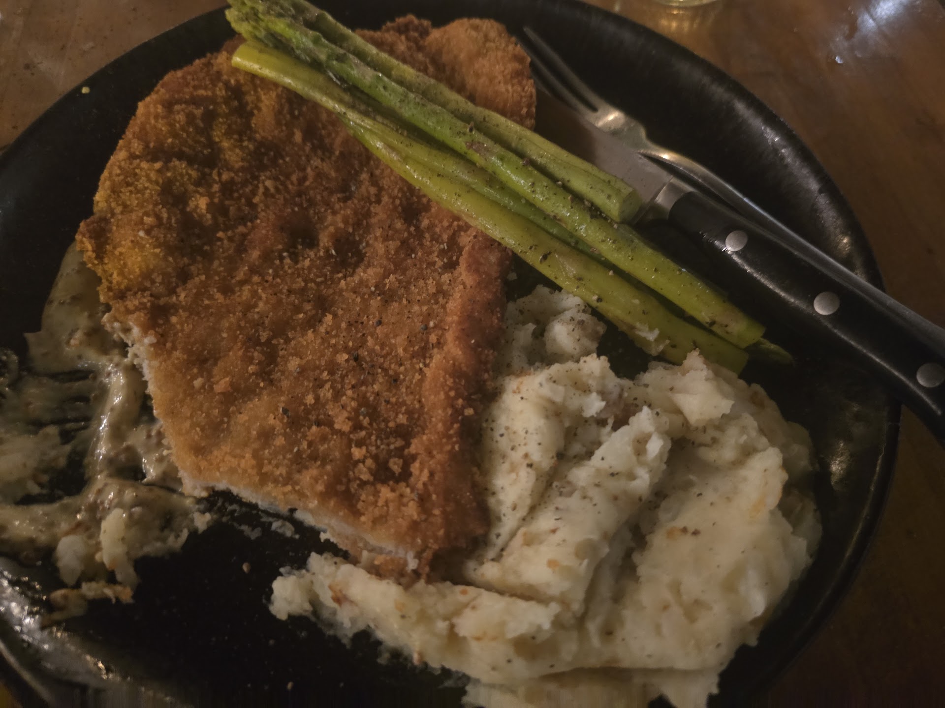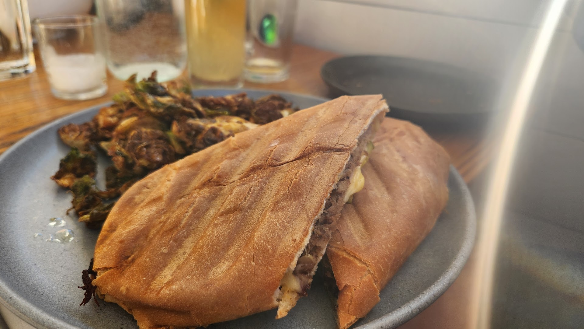 For our entrees, I ordered the Fried Chicken Sandwich and my husband ordered the cubano. Our family ordered salads with salmon. Everything looked delicious and was fairly quick to come out. My sandwich came with ranch and it definitely helped tone down the saltiness of the Fried chicken. Just eating the chicken alone was too salty and I had asked for my fries extra crispy which were amazing. The cubano sandwich was good and well made and the side of Brussels my husband got were also crispy. The salads and the salmon looked good, definitely cooked well.