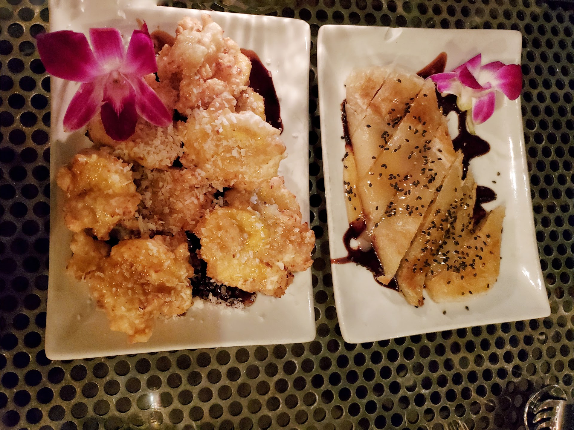 2nd The fried banana- this was little disappointing, only because we imagined it to be a sweeter but banana fried in a light rice paper (like the Spring rolls) instead it was dipped in a heavy batter (sort of like the calamari) and the banana was unripe and starchy and didn't go well with the melted chocolate. (sweetened condensed milk might have been a better choice)