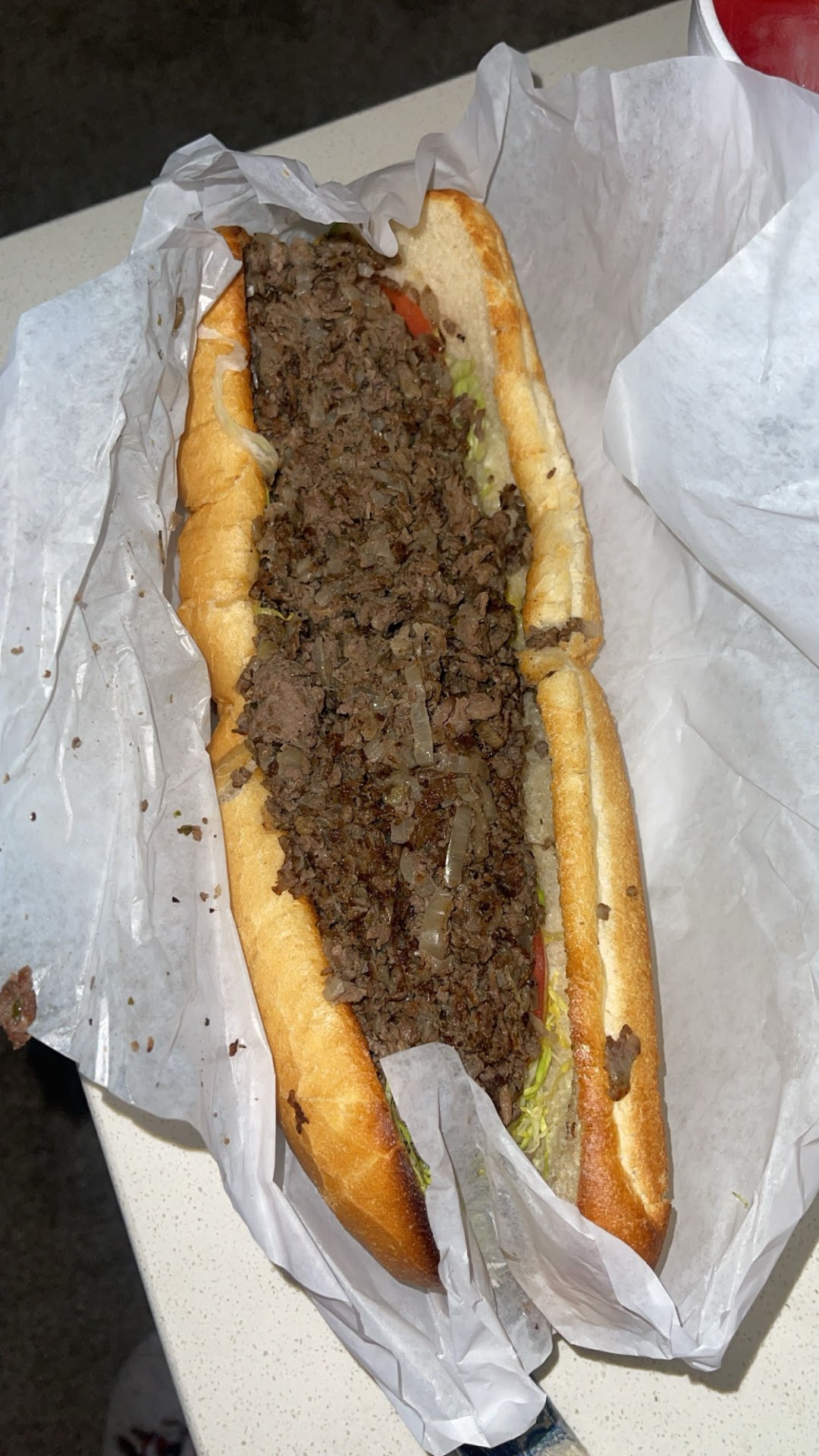 I never would have thought to stop here had my dad not pointed it out in passing. The sign outside says it all. 12" steak and cheese subs for $10. The portions are over the top. The meat is lean and cooked to perfection. No chunks of fat or gristle. Just tasty steak and seasoning. I tried to tight roll mine and eat it from the end, but I nearly dislocated my jaw trying to fit it in my mouth. I settled for a top down approach and managed to finish the whole thing with the help of a fork and short nap.