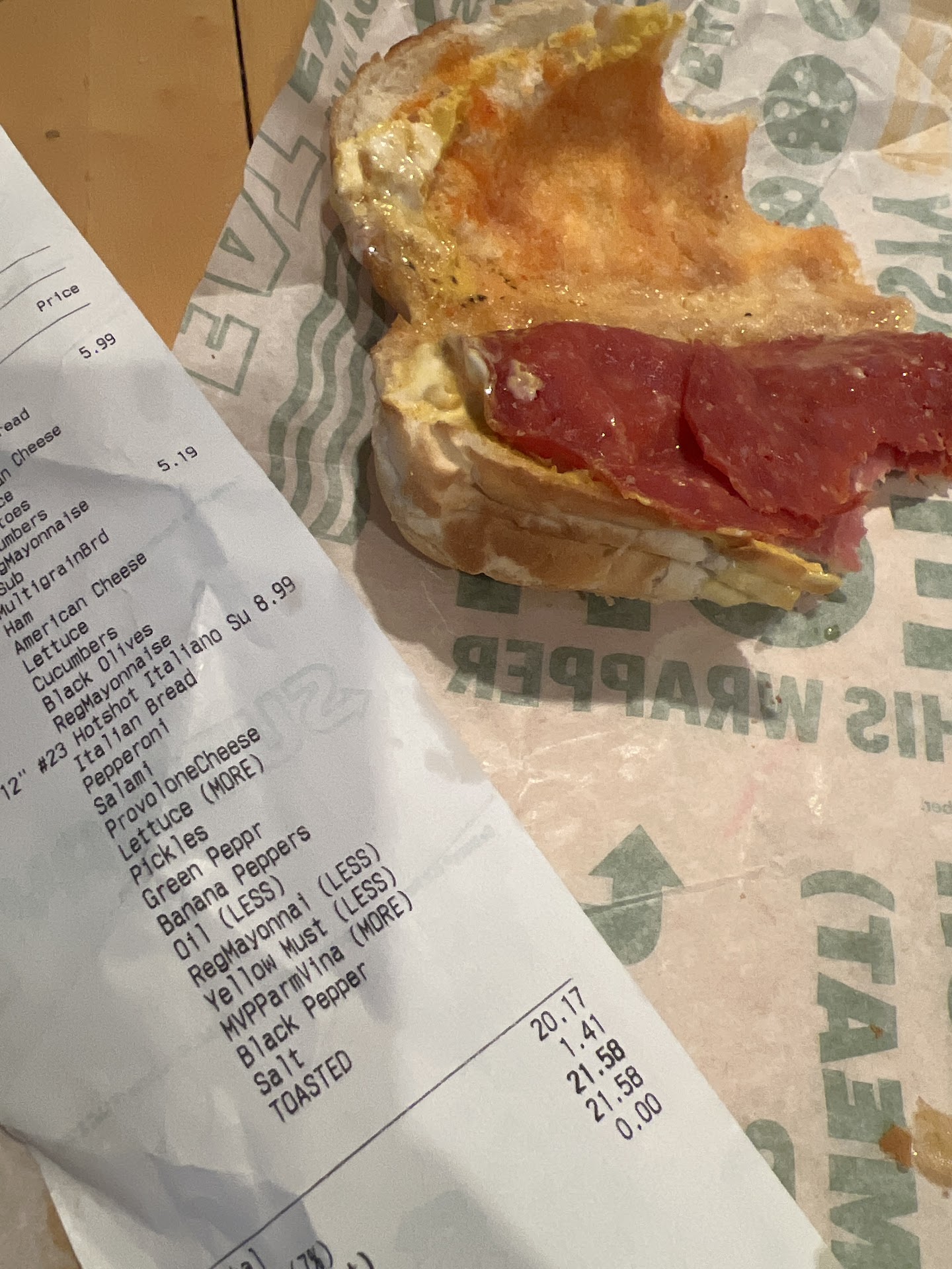 Read moreThey seem short staffed and you can tell they are trying their best, like every restaurant right now. But with that said, we paid $30 for 2 foot longs and a wrap, with 3 chips. The prices understandably have gone up. But my sandwich was forgotten and I called and drove back to get it. Sat in the drive thru for 10 minutes after they said they’d be right with me. After all the other customers left I was still sitting there and so I drove back around only to be told to wait again. Then they didn’t even know why I was there, so I had to explain again and reorder at the window and wait another 6 minutes for them to make my sandwich. All I wanted was to get extra lettuce on there. And I get home and there is like 2 pieces of lettuce. I used to order a lot, but just seems like the quality and reading what people want on subs has become nonexistent. They just throw on as much as they want to which is fine, but don’t give the option to do more and less if it’s going to be the...