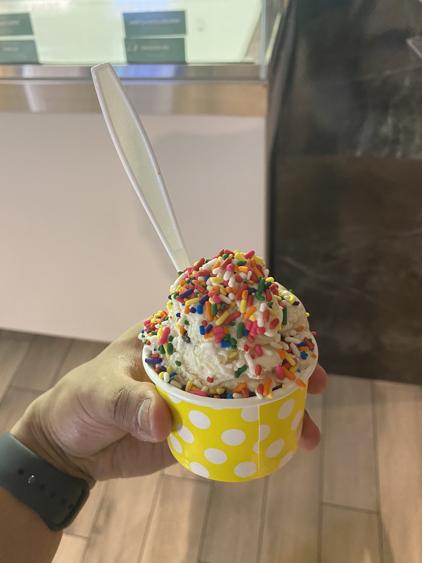 The ice cream is amazing. I do not consider myself an ice cream enthusiast. Most ice cream just tastes sweet to me but mostly unimpressive, but their ice cream blows flavor out of the water. They have many flavors and I'm very excited to try as many of them as I can. So far, I've tried cookie dough, eyes wide open, butterscotch bomb. They've all been amazing. The butterscotch bomb was actually too butterscotchy for me, so they weren't joking about the flavor profiles!