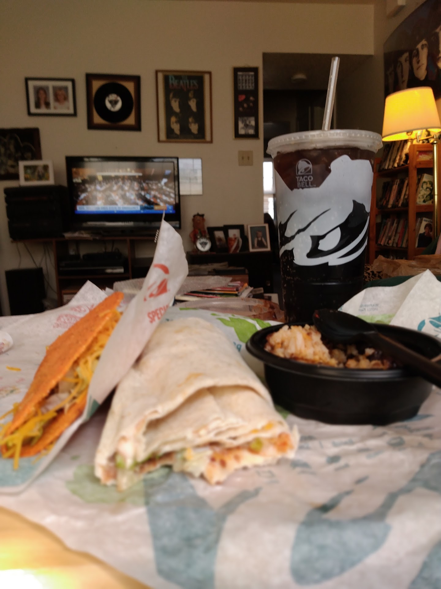 I haven't had Taco Bell for a few years. I just got the app, and I got a free Doritos Los Locos Taco for starting it. I also got a Veggie Burrito, a side of Black Beans and Rice, and a Pepsi Zero. It tasted good. They have changed their menu since I last ordered from, since I sèaw some new items. UPDATE:. June 4, 2022-I needed a light supper, so I settled for Taco Bell. I got a Veggie Mexican Pizza and a Diet Pepsi. I never had their Mexican Pizza, but I heard it was good. I gave it a try, and it was delicious! UPDATE:. June 24, 2022-I got a free Diet Pepsi from the app, and a Crispy Cantina Chicken Taco with Creamy Chipotle and a Fiesta Veggie Burrito. Delicious! UPDATE:. August 27, 2022-No it has not changed. The food is still good, and so is the service. I ordered a Spicy Potato Soft Taco, Fiesta Veggie Burrito, and a Diet Pepsi. It was different, light, and delicious! I would order it again. UPDATE:. November 3, 2022-I needed a quick meal, so I got a Crunchy Taco Bell Grande, Burrito Supreme, and Pepsi Zero. It was all delicious! UPDATE:. March 3, 2023-Today, I had the Nachos Bell Grande Combo, which consisted of a Crunchy Taco Supreme, Nachos Bell Grande, and a Pepsi Zero. Absolutely delicious! I will order it again. UPDATE: May 19, 2023-I came here to pick up breakfast after I found Starbucks was closed. I ordered an Iced Cinabon Delight Coffee and a Cheesy Potato Breakfast Burrito. The coffee was delicious as before, and the burrito was great, also. Thank you, Taco Bell, for saving the day! UPDATE: June 18, 2023-I decided to try the Steak Chillie Verde Fries, along with a Pepsi Zero. The Steak Chillie Verde is French fries, steak, peppers, cheese, and sour cream. It is the main item and side item all rolled into one. It is absolutely delicious! It is a limited time item, but should be on the menu all the time. UPDATE: November 29, 2023-This time, I got a free Spicy Potato Soft Taco by redeeming a reward in the app. I also tried the Veggie Mexican Pizza, which was delicious. I ordered a Pepsi Zero, but their machine ran out of it, so I ordered Diet Pepsi instead. The whole meal was great, especially getting a free item! UPDATE: March 27, 2024-I ordered from the app the Cantina Crispy Chicken Taco and Nachos Bell Grande Combo, along with a Pepsi Zero. These tacos are new, and it tasted great. The Nachos Bell Grande were delicious, like always. This was a great meal. UPDATE: April 17, 2024-I decided to try the Big Beef Nachos, and I had a reward to redeem, so I redeemed for a free Pepsi Zero. I got my meal for cheap, and it was well worth it. UPDATE: August 27, 2024-I had a reward in the app I needed to redeem, so I got a free Spicy Potato Soft Taco. I also ordered a Grilled Cheese Burrito with Black Beans and a Pepsi Zero. The meal was cheap, and it was very delicious. Having apps with points and rewards is well worth it! UPDATE: December 3, 2024-I had another reward to redeem, so I got a free medium Pepsi Zero. I also ordered a Beef Chalupa and a Beef Burrito Supreme. It was all delicious, especially the Chalupa. They are in the middle of a decades promo, and Chalupas are something they had years ago. I wish they had it all the time! Chalupas are like a taco, but with a bread shell, rather than a hard shell. That was the best part of the meal! UPDATE: June 8,2025-I tried something I never thought they would have on their menu: 10 pc Crispy Chicken Nuggets! These are different in that they are spicy, and they are delicious! I also tried their Nacho Fries. These are like French Fries, which I I never thought to find here! They came with Cheese sauce, and these were good. Along with Lemonade, this was not your typical Mexican meal, but this is something for those who don't want your normal Mexican food. UPDATE: June 30, 2025-I tried some more of their new chicken items. I tried their Cantina Crispy Chicken Taco, Cantina Crispy Chicken Burrito, and a Medium Pepsi Zero. The taco was messy, but still good. The burrito was good. I redeemed points...