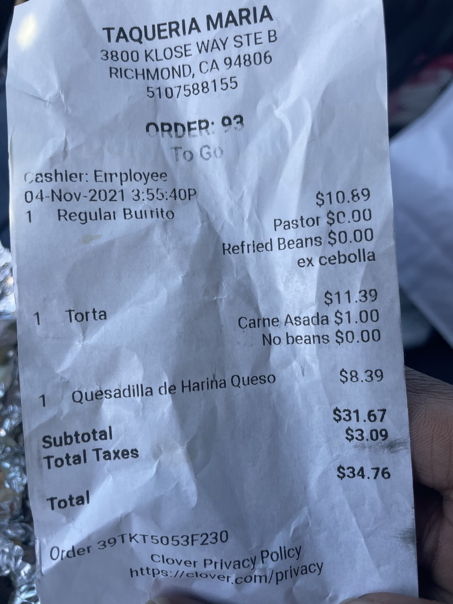 Adequate but over priced taqueria. As of November 2020, $10.89 for a super burrito, $11.89 super nachos and $3.69 per soft taco. My family bypassed several taquerias with the hope that Maria’s 4 and a quarter out of 5 star would be the spot.