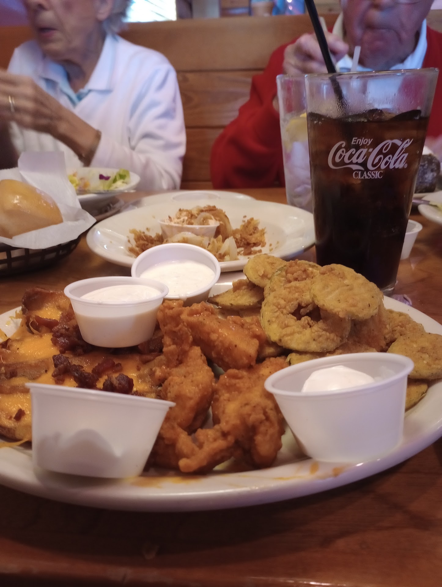 I get to go to Texas Roadhouse once in a while. When I do, it's a treat. The meal started with Coke Zero, Roll, and Blooming Onions. Delicious, but I was trying to save room for my meal. That was the Combo Appetizer, with Buffalo Wings, Fried Pickles, and Tater Skins. That was just as delicious. My next question is when do I go next time? UPDATE: June 30, 2023-I finally got to go back! I ordered the Killer Ribs with Steak Fries and Coke Zero. I also had some Blooming Onions and a Roll. It was all delicious! So when do I go back? UPDATE: October 1, 2023-I went there last night to pick up a mobile order. I ordered Chicken Critters, Steak Fries, and a Diet Coke. They also gave me four rolls, but I was only able to eat one of them. Everything was so delicious! The only complaint was that there was a line at the pick up window outside when I came to pick it up. They could have used more help. UPDATE: June 21, 2025-I ordered the Pulled Pork Dinner from the app, and I got to choose two sides. I chose the Steak Fries and Sauteed Mushrooms. The meal came with rolls, and I also ordered Lemonade. When I went to pick it up, there was a boy working the pick up window. Do they have any adults working in there working with them? When I got home and was getting my food out, I found there was no Sauteed Mushrooms. Did the boy have something to do with it? I sent an email to them to let them know what happened. I got an email saying they were sending me a coupon for a free meal to make up for what happened. I will hold off a little bit to use it. I heard they ran out of steak and other meats one day. UPDATE: July 23, 2025-I finally got to use my coupon for a free meal. I ordered the same thing I ordered the last time to make up for not getting one of my sides: The Pulled Pork Dinner with Mashed Potatoes and Gray (no Steak Fries this time), Sauteed Mushrooms, Rolls, and a Coke Zero. In the end, I only had to pay $1.58 for my meal! You can't get something that cheap at Texas Roadhouse, and it...