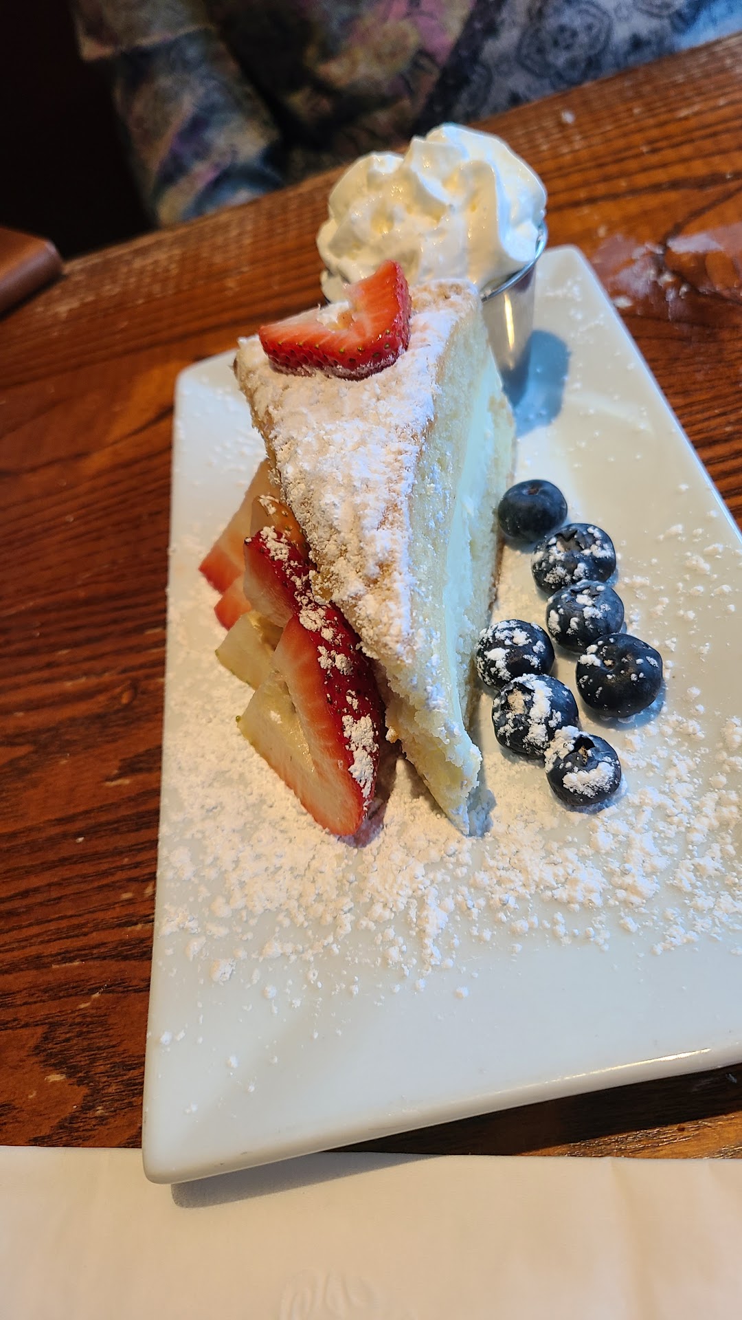 Came in tonight for my sister's birthday dinner: First I'll start by saying great, super fast and attentive waitstaff, all the way through our experience. The bartender greeted me immediately, everyone was friendly, and the vibe was that of the local neighborhood bar. Our server had knowledge and recommendations. Happy Hour also seems like it's worth checking out! First little blip happened with my drinks- they were out of mezcal for the mezcal negroni. Whatever, NBD, I ordered a martini instead. First one came out with a little gnat in it, but once I let our server know she took it back and had it remade for me very quickly. Other drinks were good though! For apps we got the cranberry and goat cheese salad (simple, huge, fresh, great champagne vinegarette dressing); the brussel sprouts (so good, you've gotta order these); and the spinach artichoke dip with pita (warm pita, the dip was awesome and looked like it was pureed? Very smooth and tasty). It gets a little dicey with the entrées we got: My sister wanted to get the filet mignon, but they were out (again, no big deal, restaurants run out of things over the weekend), so she got the chicken fried steak instead. The steak was fried a little too long, but was good, it could've used a bit more gravy, though. For sides she got green beans (fine, but much better when we added salt and dipped them in the lemon remoulade); and Mac and cheese, which also just fine. A little dry, but not bad. I ordered the fried oyster entrée, and the oysters were great, especially with the Meyer lemon remoulade. Seriously, I think the remoulade was my favorite part of the meal. The spinach and rice that came with it weren't great however. Rice was a bit dried out, and just plain white rice, no sauce or seasoning. Same with the spinach, I expected some kind of garlic or onion or any kind of flavor but it was just plain, not-quite-fully cooked spinach. Again, much better with salt and the remoulade. My mom got the fried fish entrée with the braised collards and spoon bread. The fish was good, just classic fried white fish. The spoon bread was also good. Not the best, but definitely enjoyable. The collards unfortunately were super caramelized to the point of being burnt (like.... little crunchy bits on some parts.) Our server was super understanding and got a replacement of mashed potatoes for my mom instead. Which were.... unseasoned. Tasted like they just boiled and mashed 'em. Again, added salt, pepper, and butter to them to make them more enjoyable. We ended the meal with a lemon cake! It was very tasty with fresh strawberries, blueberries, and whipped cream.