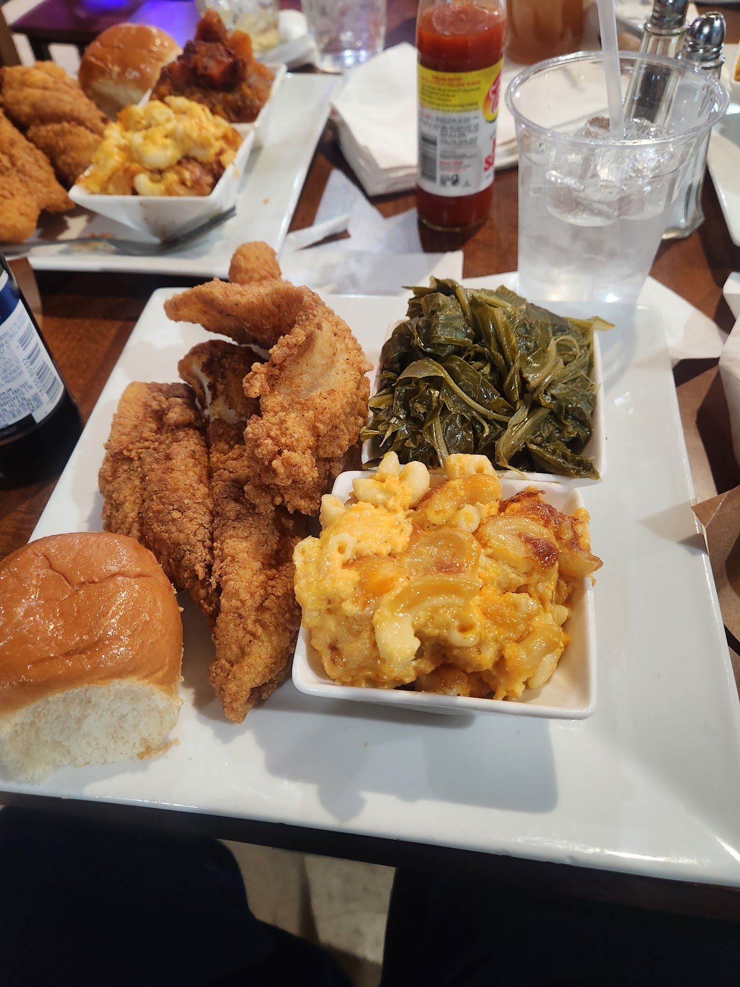 ย ย ย Read moreWhat a hidden gem on the Southside of Richmond.. great prices, great service, great drinks. The food is over the top delicious w/generous portions. I had the Catfish trio entree w/Mac n cheese & collard greens & a roll. Everything was on point. I was disappointed in the roll(wish it were home made instead of packaged), there were other choices for your bread options. The servers were friendly & knowledgeable (gave us a history of the place which is interesting). The bar manager, Melvin, made delicious drinks & also was very friendly & nice. A great place to get the "itis" so be prepared to be full! They have a petitioned off small cigar lounge that is really nice as well. They offer entertainment on the weekends(live bands, karaoke etc). Highly recommend if you're looking for a...