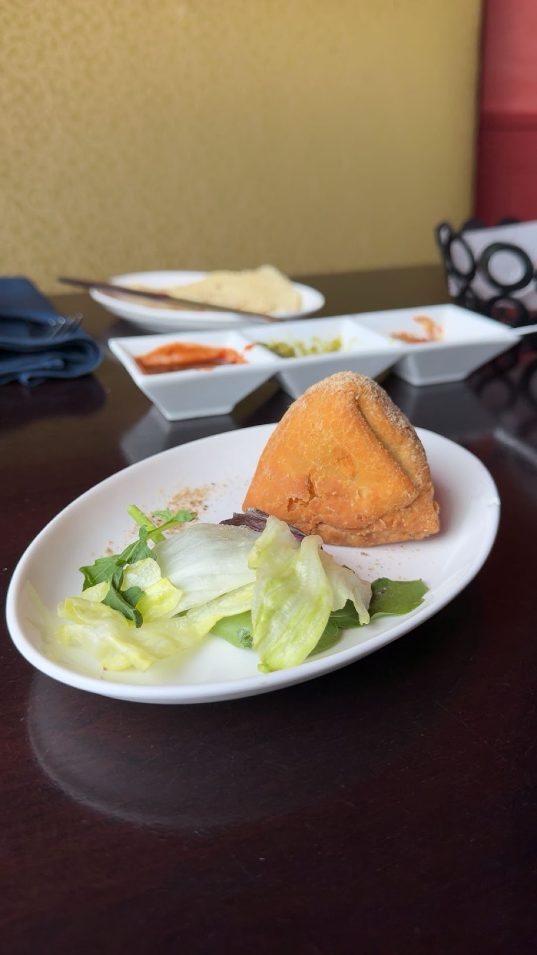Came here for a first date.. my reservation what's for 7:00 p.m. and I arrived at 6:45 and was immediately seated.. it took about 10 minutes before somebody finally came over and asked me if I would like anything.. my date had not yet arrived so I simply ordered the vegetarian sampler for two..