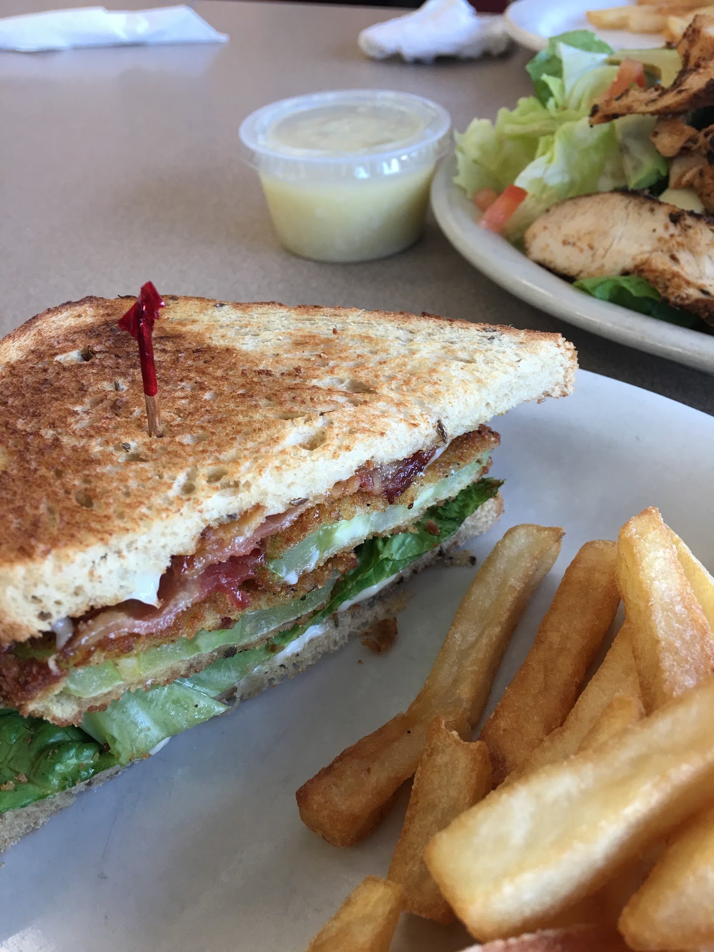 Downsides: We've been 3x. The bathrooms are single occupancy, have a foul water/sewer smell and are located right behind the kitchen. The 2 bathrooms have been unclean each time. They do not have inclusive signage.