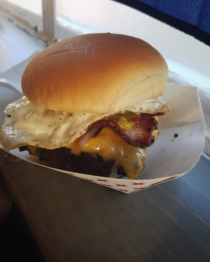 The drinks available are on a blackboard on the wall to your left, and these are limited to a few domestics. Soft drinks are limited to bottled water or Ale eight one. Order placement is limited to your seating, which is limited to 12 stools at the counter. Orders are taken beginning at the left end of the counter, moving to the right, one order at a time, one burger completion at a time.