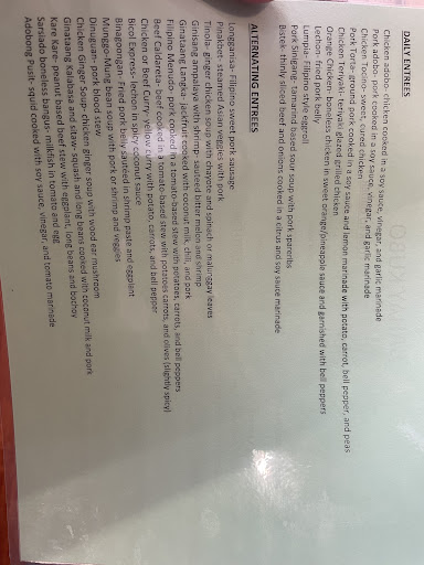 Read moreWent there for lunch, tried the buffet, it all had great flavor, but the rice was dry and the pork adobo was half chunks of fat, and half overcooked meat, seemed like it had been sitting there for a day. It was almost too salty to eat, seemed like it had been marinating in soy sauce for a day. I also got the chicken and vegetable dish, I had small pieces of bone, broken chicken bones, and very little meat. Cost me $22 for two entrees and rice, so I would say it's overpriced and the cook is not paying attention to his product. If you like to eat salty golf ball size chunks of fat, this is the place for you.