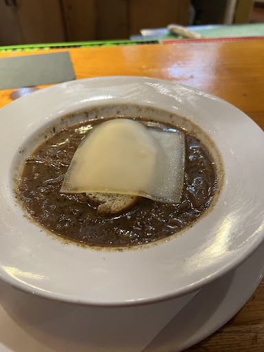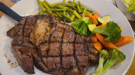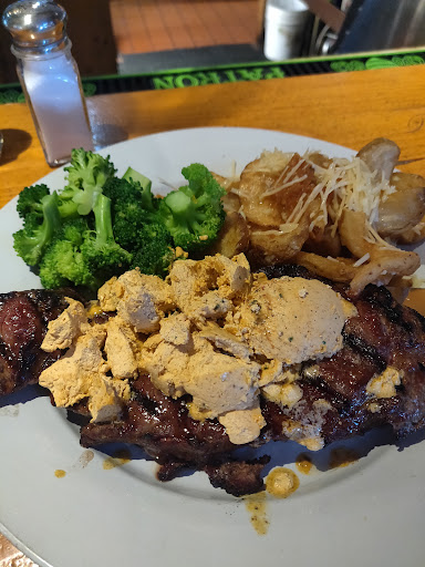 Three of us ordered steaks, 2 new yorks and 1 rib eye. I believe that the chef had one single 2-inch steak left in the freezer, so instead of serving it, he sliced one vertically in three even pieces, each 0.66 inches thick! By the time we got them (and yes they all looked identical) they were 1/2 inch thick! On top of that, there must've been 25% of the "steak" just fat and grizzle. The portion that was edible tasted good, but it was ridiculous. I guess I shouldn't have expected to eat a decent meal...