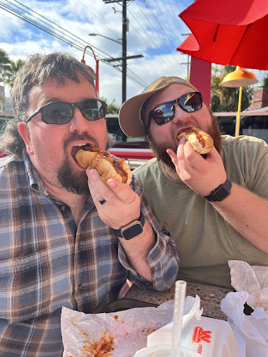 Read moreI was having a rough day in the middle of a long week. I was regretting the fact that winning a rugby tournament (lower division, still counts) may not be as great as i had once thought. Going up against two young girls with only one good ankle had left me in zone coverage with a peg leg. For once the infinite patience of an AI was a blessing, and not a curse, as I didn't feel guilty about wasting another human beings time, as I was trying to decipher a coherent answer from an overtired and over hungry, four year old (there was no one behind me, fortunately). When I pulled up to the window, Suzy, who was at the window, and must have seen the distress on my face, immedietly went into action...because her mention of sprinkles on a chocolate drip cone turned my day from a crash course to a smooth landing into a better tomorrow. The screams turned to giggles, and I didn't have a child's screams blasting coherent thoughts away like a sail at full mast into the wind. It reminded me that every trip to this Wienerscnitzle in particular, has been pleasant. You know they are doing something special in the fast food industry when you don't feel existential dread radiating from its employees. I have been to all seven continents, and although I do not recall seeing or in fact looking for a Wienerschnitzel on most of them.. all of my anecdotal evidence strongly leads me to believe... this is in fact the greatest Wienerschnitzle in the world. This one is doing something special, and you can feel it even from the drive through. I have an exemption clause on fast food; I must consume a two chili dog combo with grilled onions seasonally. Therefore, I couldn't be happier to have the GOAT in our small town. This veteran salutes you China Lake boulevard Wienerschnizel in Ridgecrest,...