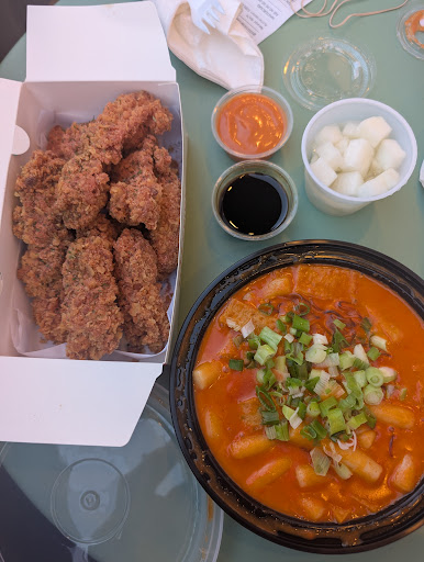 Read moreGreat korean fried chicken with a couple unique and tasty options. I think the coating is a little too thick, maybe because of the extra potato crunch. They have pretty good dipping sauces as well but you have to pay - we like the kbbq and their 101 sauce. Ddukbokki has fish cake and some chewy glass noodle. I think the rice cake is a bit overcooked and the 101 one would probably be better than rose cuz it is more on the sweet and fatty side. It is pretty spicy for me. At this location, there are only 2 outdoor tables...