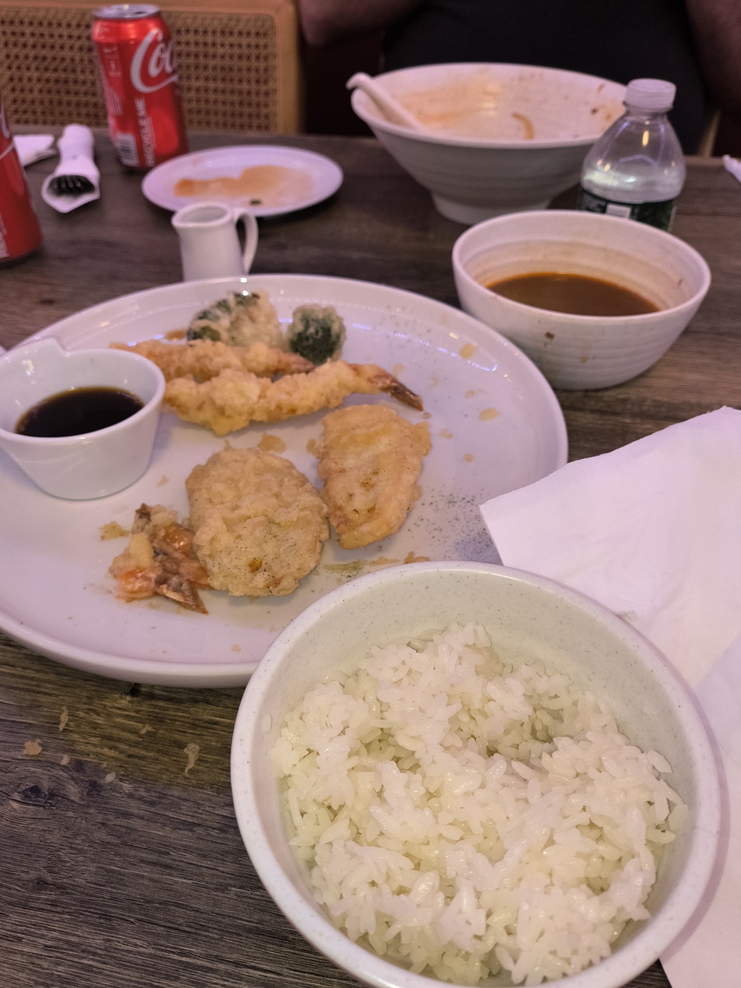 The pork dumplings were crispy fried but not oily. I also had the shrimp and vegetable tempura and a side of rice. The tempura was also very crispy and golden, every bite was delicious.