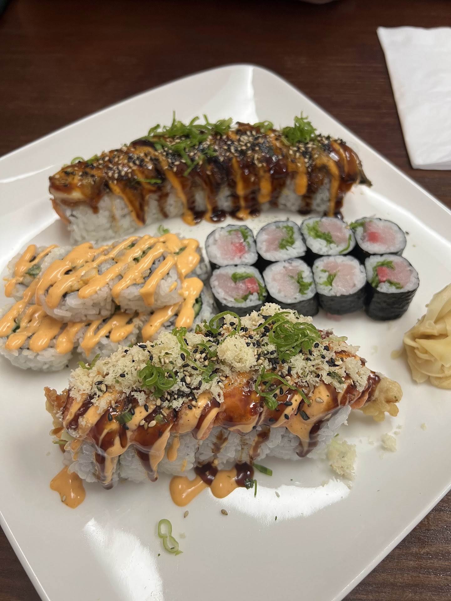 I appreciated that they had lunch specials even on Saturdays. My husband and I got the two special rolls and two regular roll lunch and shared everything. For the special rolls, we had the spider roll and I think the golden sunset roll? I couldn’t really tell if it was good or not, or even what type of fish was in there because there was entirely too much sauce covering everything. I even tried to scrape some off. For the regular rolls, we went with the spicy white tuna and the yellowtail scallion. I liked that there were actually little chunks of white tuna in the roll, and it wasn’t mushed up into a spicy fish paste. However, they drizzled a bunch of unnecessary spicy on top so if you get a spicy roll, be sure to ask for no sauce on top. The yellowtail scallion was by far my favorite. The fish was fresh and there wasn’t any sauce to cover it up. It was simple and clean. That being said, the 4 stars for this review would only apply to the regular rolls. If I only ordered special rolls, it would probably be a 2.