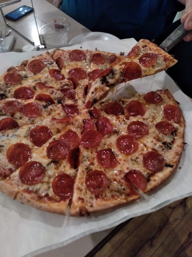 Nice atmosphere, it is somewhat reminiscent of a western saloon. There is a bar service and tables on one side, and just regular dining tables on the other where we sat. Service is sort of partially self-serve in that you go up to a counter to order your pizza and they bring it out to you. Our waitress was very friendly and checked on our table and several others many times.