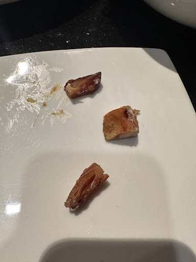 *I should add that I did indeed try a few bites of the “good” pieces of chicken before I said anything to our waitress, but it was so rough and chewy! It tasted like chicken that was cooked the day before and...
