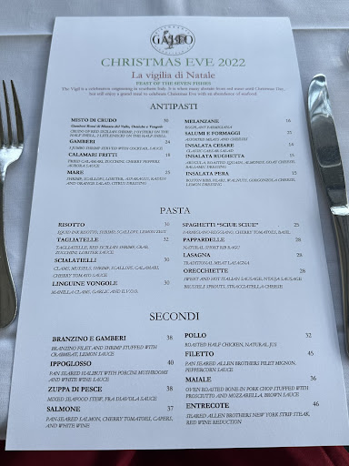 Main meals, the four of us had Filet Mignon, White Pizza, Rigatoni, and stuffed chicken. The filet was overcooked a bit. It was okay but not worth the price. The sauce on it was delicious. The pizza was subpar. The onions were not caramelized well, the mushrooms tasted reconstituted, and there was way too much cheese. I did get chicken on it. It was so dry and bland, it didn’t even taste like chicken. The rigatoni was good. Our guest finished it. The chicken was okay. The broccoli was great. Desert was okay, but def not 4 or 5 Star.