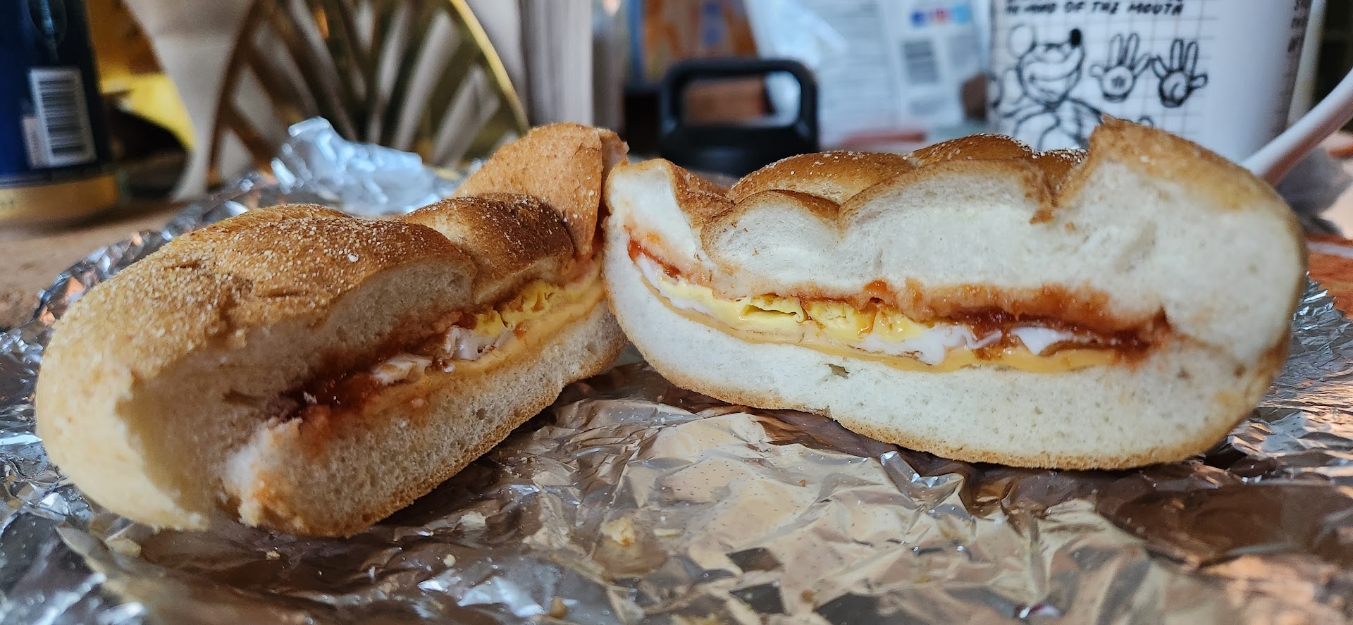 Small and locally owned. There were a few people ahead of us and gave us a moment to see what to order. We decided on two orders of egg, cheese, and ham woth extra ketchup on a roll. My order was an egg and cheese with ketchup on a roll. All orders were fresh and felt small. However, it's a good pick me up for morning breakfast and reasonably priced.