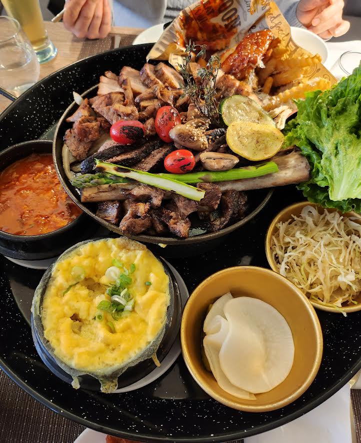 We got the expensive large duo platter (serves 2+ at $119). It's not worth it. The presentation of the food on the platter was nice. Looks good in photos. It even comes with a wide variety of things on it. Each thing by itself was just not that good. The BBQ brisket was more like Texas style and was pretty overcooked. There was so much smokiness infused into the brisket and the bacon, too. It was overwhelming. The other Korean-style BBQ meats were mid compared to other Korean restaurants. It came with steamed fluffed egg and spicy stew that was probably the only good part about the platter. It came with little sauce cups. The portions were comical. I had to ask for extra bc it was so little. It was three dabs and it's gone. Overall, the platter was gimmicky, which I should have expected when it arrived on a giant dish along with a swivel. I have no idea who these diners are on social media hyping this platter up. It's just not how they described. It's like it was only made for social media.