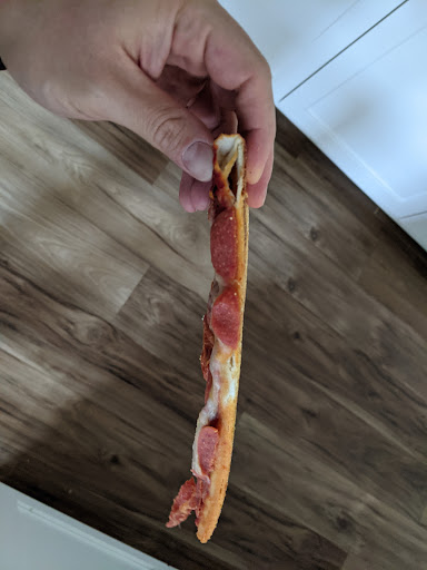 The pizza here is downright bad. Reading the other reviews, I don't know if I just got a bad batch or what, but I did not like it in the slightest and will not be returning. The crust was thin, but in a really bad way. It was super hard - not crispy, just hard, but still somehow not burnt - but the inside was almost raw? I'm including pictures. It kind of felt like they just lay two pieces of dough together and then sort of cooked it. There were huge air pockets so you could see THROUGH the pizza for some reason. In fact, some pieces were ALL air pocket. How is an entire piece an air pocket? How is that even possible? I wish I had taken a picture of one, sorry. Anyway. The crust was just terrible. I love the crust of a pizza, it's what makes or breaks it.