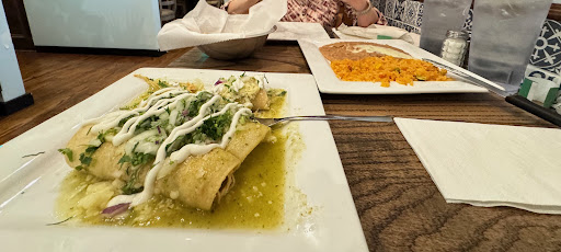 First, difficult to find! Second underwhelmed, only because we're looking for a Mexican restaurant near us that serves food less bland. Where is the chili? The cumin, the garlic, the flavor?? The meal was just ok. The service was great. The music was too loud, but our server was so happy he was singing - and that was wonderful. My taco was terrible (cold over fried hard shell overpowering the great steak, cilantro and onions - but the shell fell into pieces and was a mess), my enchilada was terrible (the tortilla was..? Too strong a flavor for the bland cheese, the ranchero sauce was good, but the cheese :(.. I poured salsa from the table on everything to try to find flavor)... the groubd beef burritos my girl chose were really good. The groubd beef chimi my guy bought had shredded beef instrad, not the best, and x not what he wanted) it was just ok. Nothing was perfect, but our singing waiter. OH, wait, the rice and beans, the chips, salsa and soda (uncharacteristically FULL OF CARBONATION!!!) Were really good! If you want chips, salsa and a coke (served with a smile), I highly recommend.