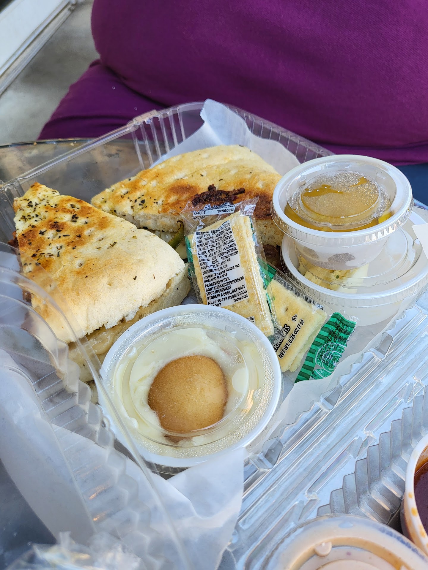 Read moreI have tried several of the paninis and they are all the same. All bread and very little of everything else described on the menu! I just tried the Cheese Steak panini. When the menu says, smoked brisket, onions, and mushrooms, you assume a hearty sandwich. This panini might have had 3 slivers of onions and 2 thin slices of mushrooms right in the center of the bread. The brisket which was mostly fat was so tough you could hardly tear it with your hands, much less chew it! This sandwich should not be allowed to be called a...