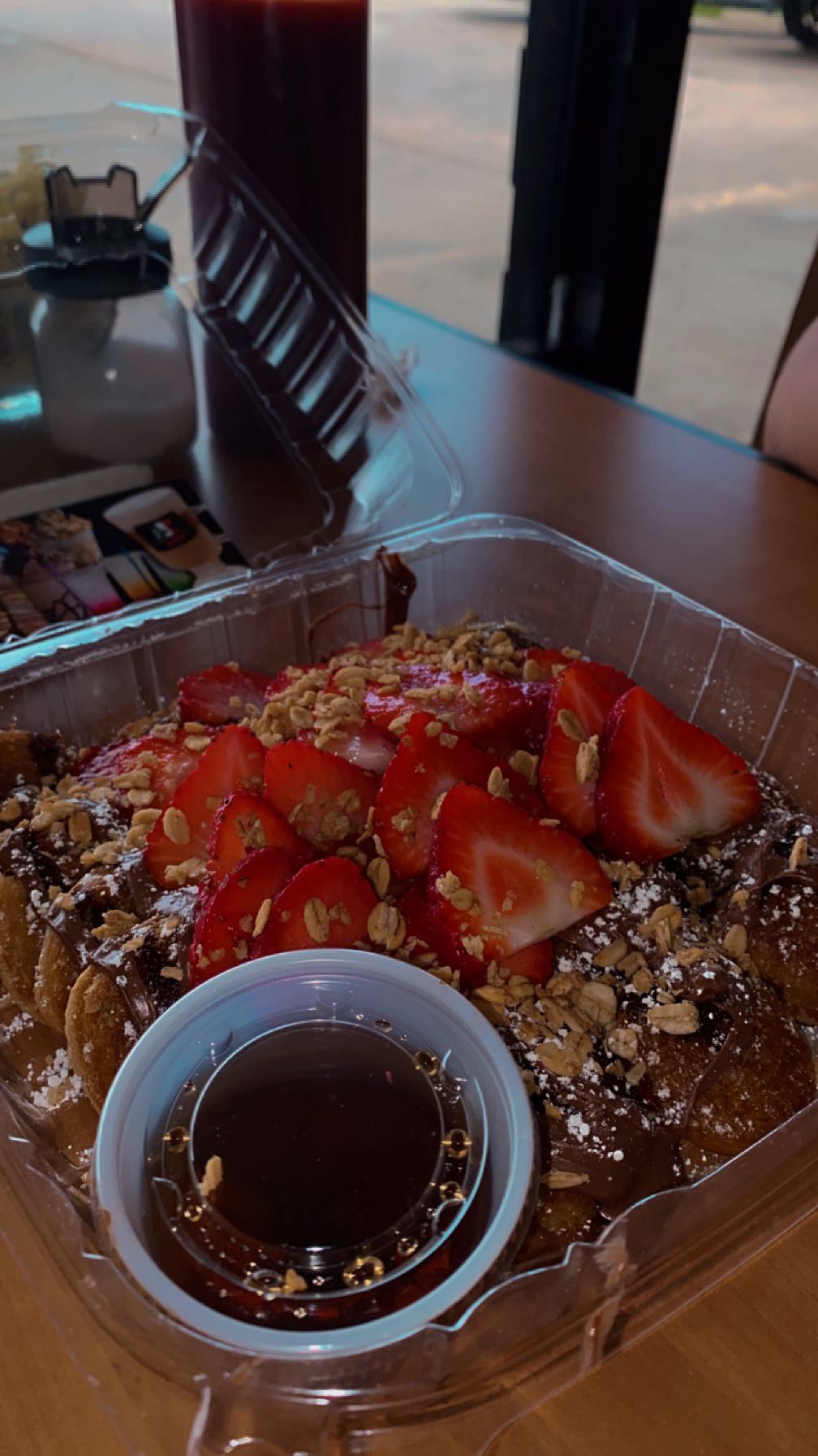 Everything was made fresh to order, so you might have to wait a min for the food. Oh mi gosh THE CREPES!! Get the crepes 🙃 I was afraid that everything was going to be overly decadent, but surprisingly it wasn't. I also really liked the waffles, theirs was different, a little sweet and savory, tasted like it had a sprinkle of salt on/in the batter. Pancakes were good too, but I think I'll try it the traditional way as the minis were slightly dryer. After we ordered, we realized that they had fresh fried churros too!