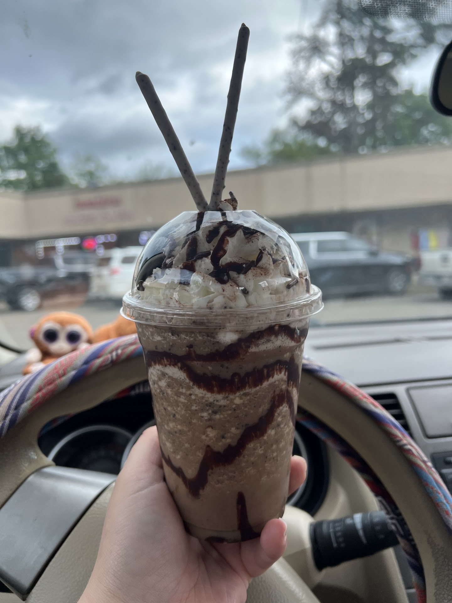 We ordered the crepes with Nutella and Strawberries, mini Pancakes with caramel and various Fruits, waffles with the condense milk and told him to do it however way he'd like to eat it. My friend saw that they had Mazapan frappe, which is a Mexican peanut candy, so that's what she got (I love those candies, it's a esophagus sucker though because it's dry, but so good!) I was so excited to see that they had Affogato on their menu!!! Affogato is usually expresso or cold brew paired with a scoop of ice cream or Gelato.